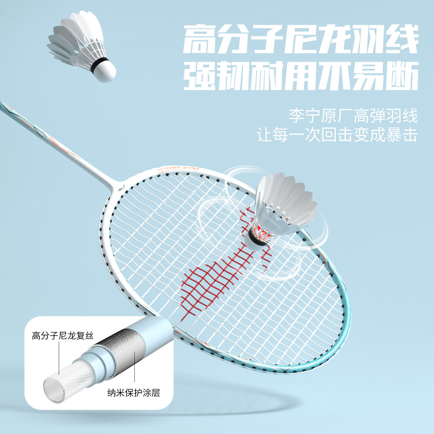 李宁官方旗舰正品羽毛球拍初学入门家庭用男女超轻碳纤维双拍套装