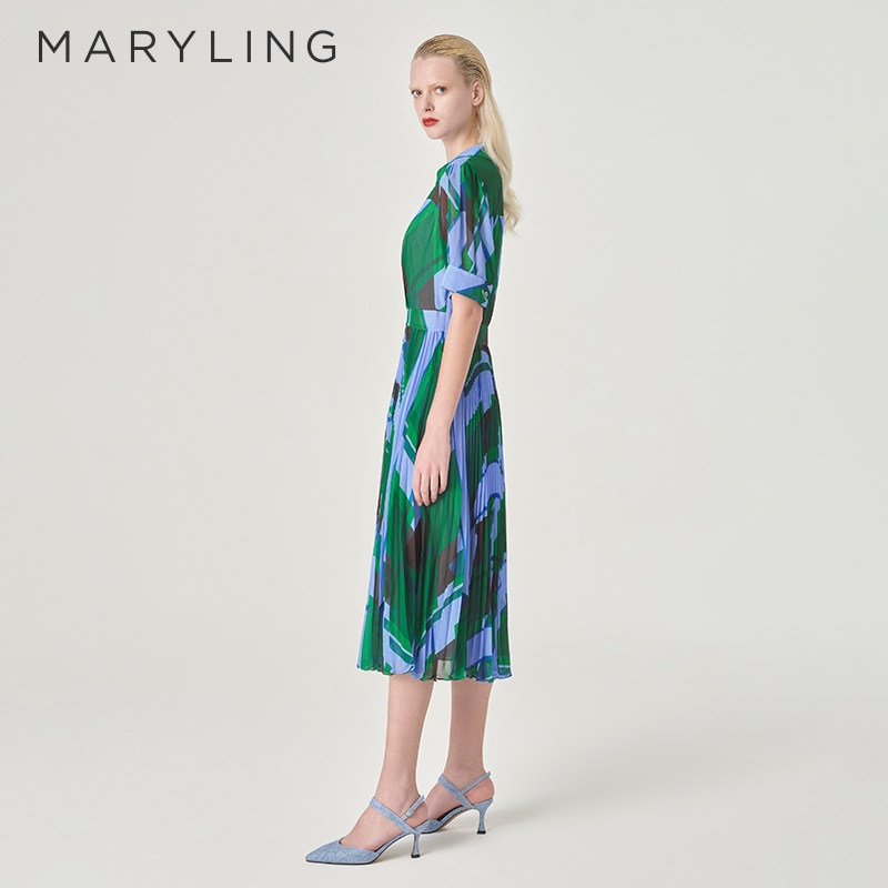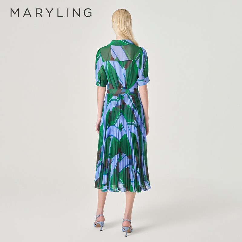 【变奏菱格】MARYLING玛俪琳24夏新品V领衬衫领连衣裙A1ECW64600