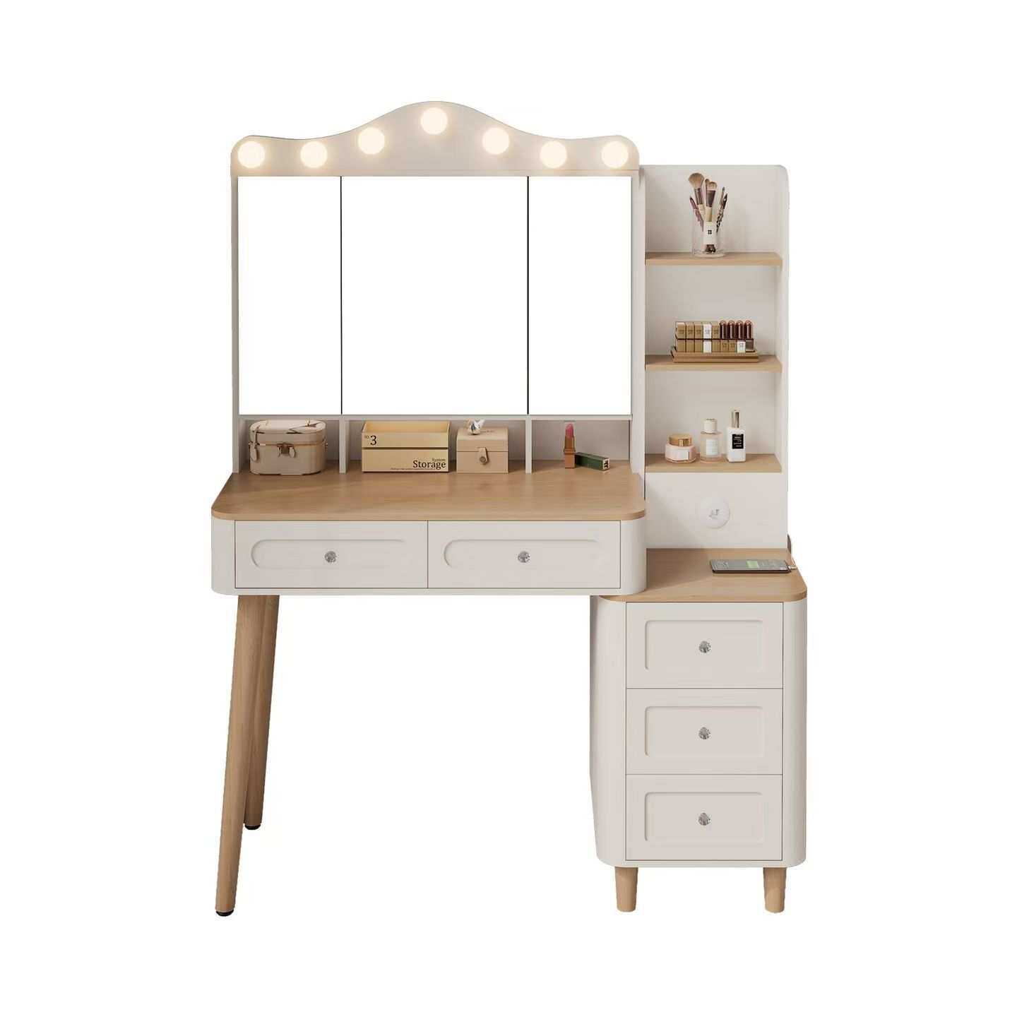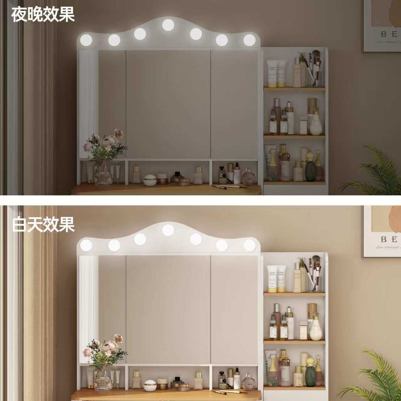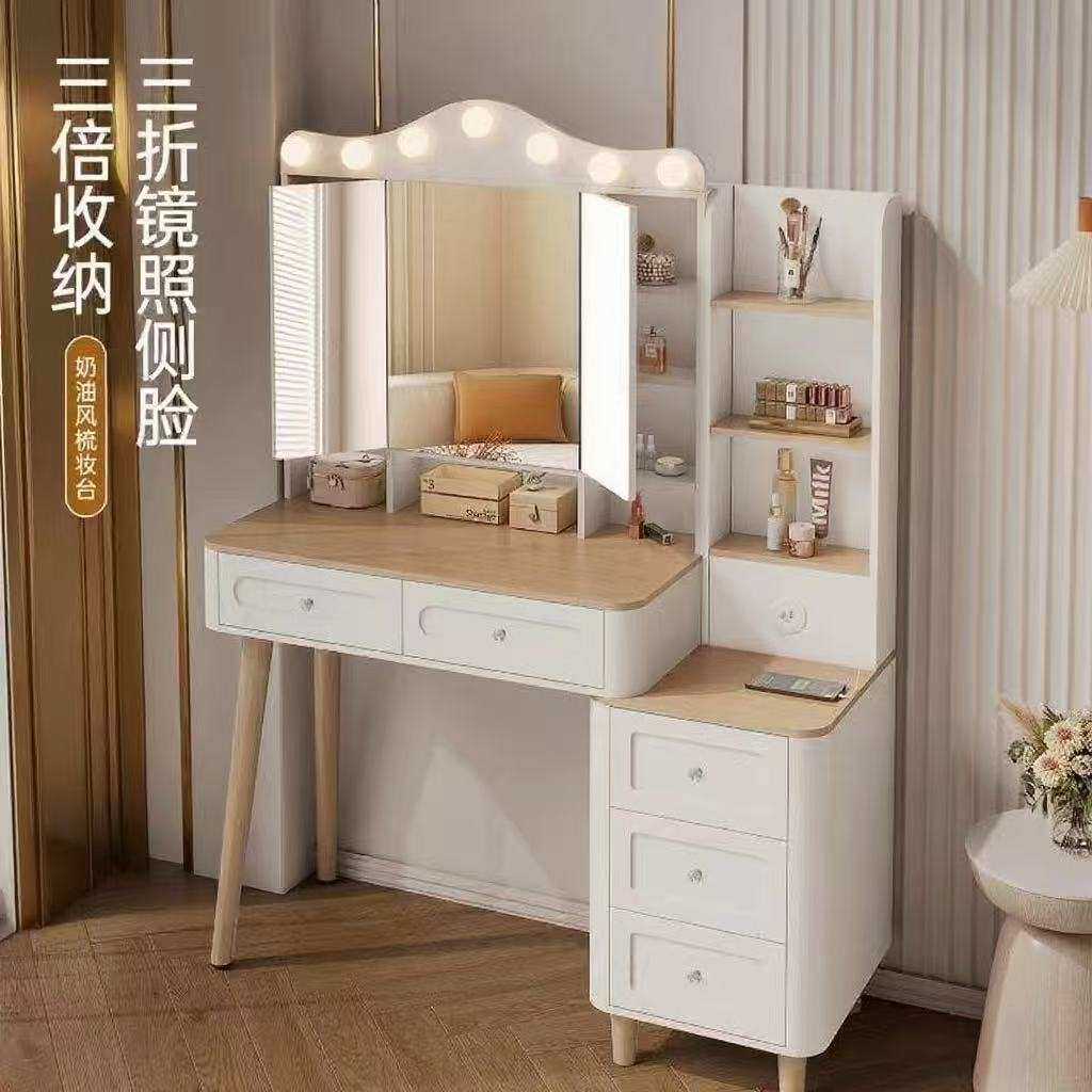 2025新款简约多功能梳妆台卧室床头柜带镜收纳斗柜小户型化妆桌
