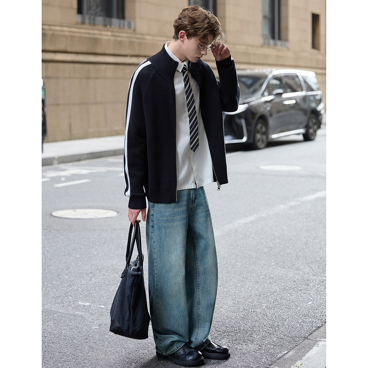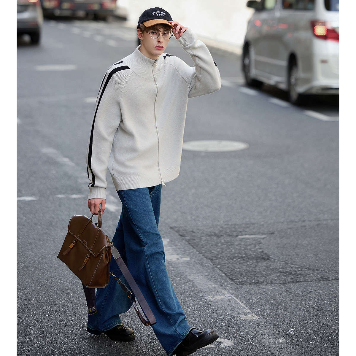 【入会立减20】CANOTWAIT 陈伟霆蜡笔提花毛衣开衫男女外套针织衫