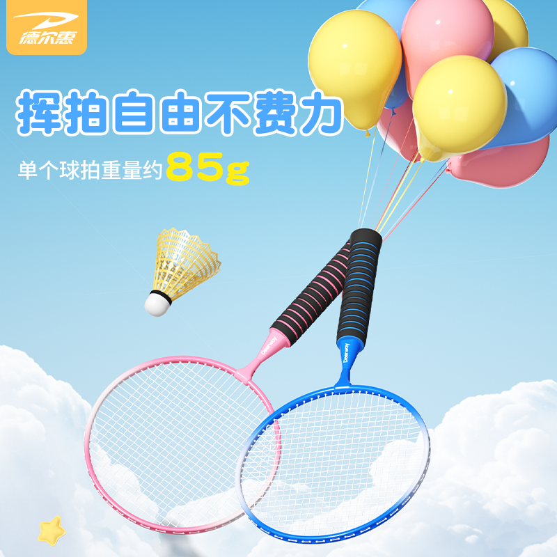 儿童羽毛球拍套装双拍耐打小学生3-12岁幼儿园宝宝初学者球类玩具