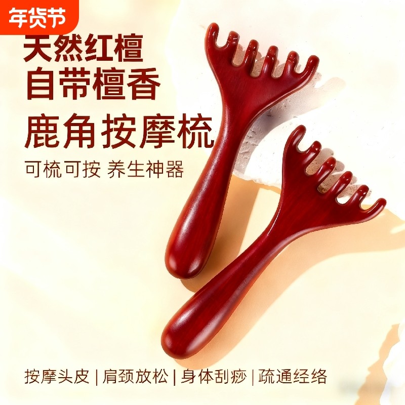 梳子按摩梳天然檀木鹿角梳按摩头皮经络刮痧中医养生小梳六爪便携