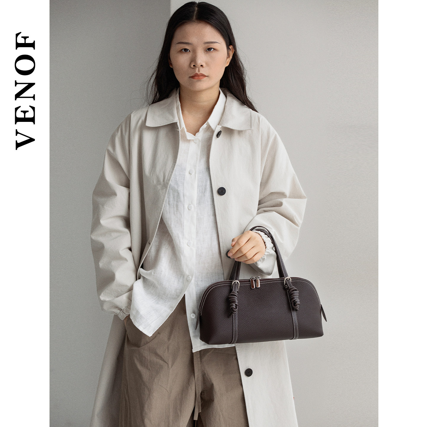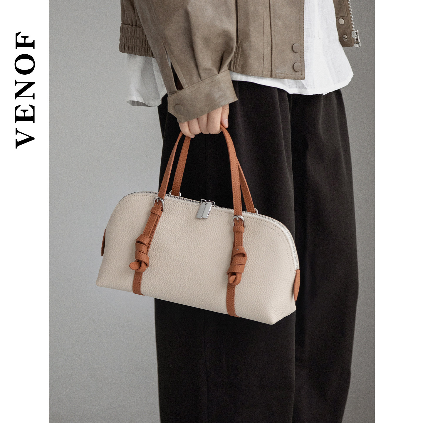 维洛芬 荔贝 波士顿枕头包女士斜挎单肩头层真牛皮手提腋下贝壳包
