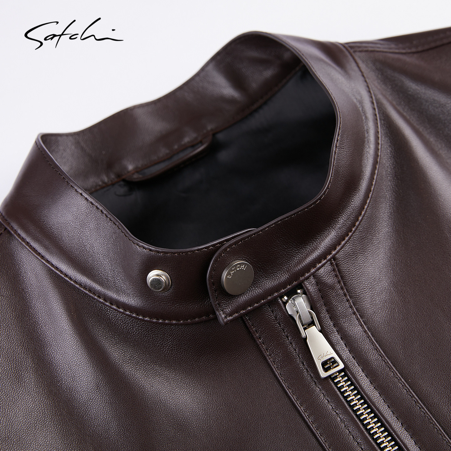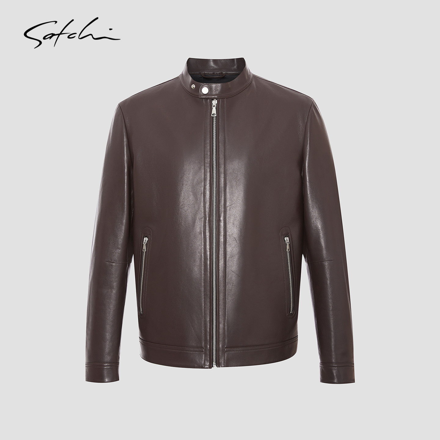 SATCHI沙驰男装男士真皮皮衣冬季新款哈灵顿立领机车羊皮夹克外套