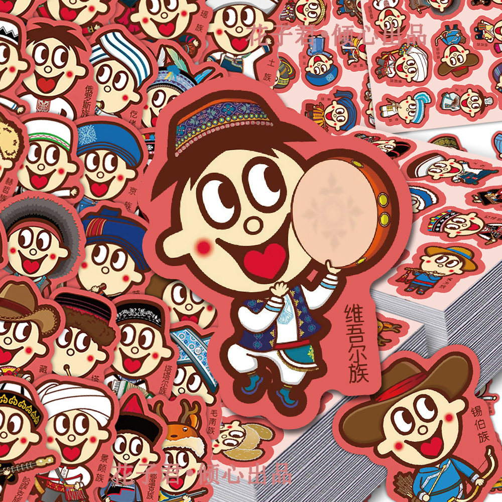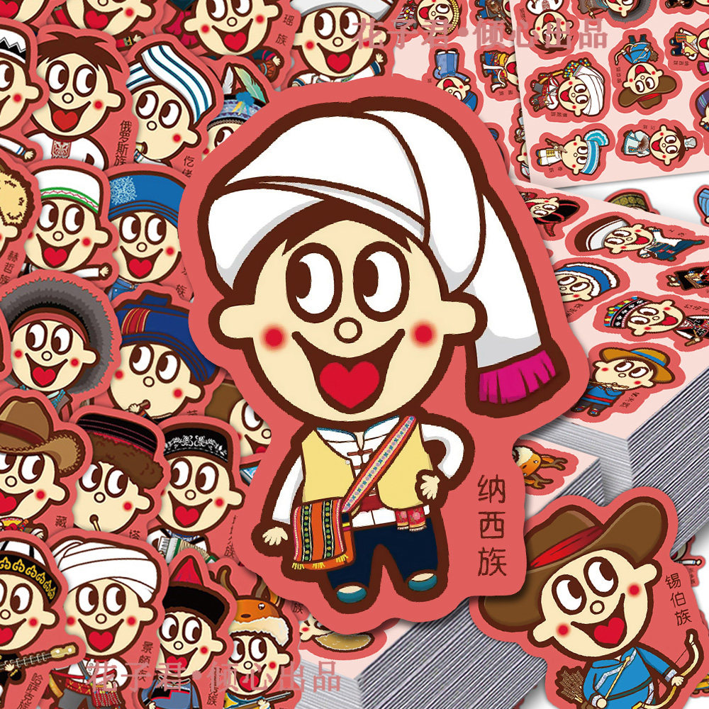 112张旺仔版56个民族贴纸创意中国民族文化传统服饰贴画diy桌面
