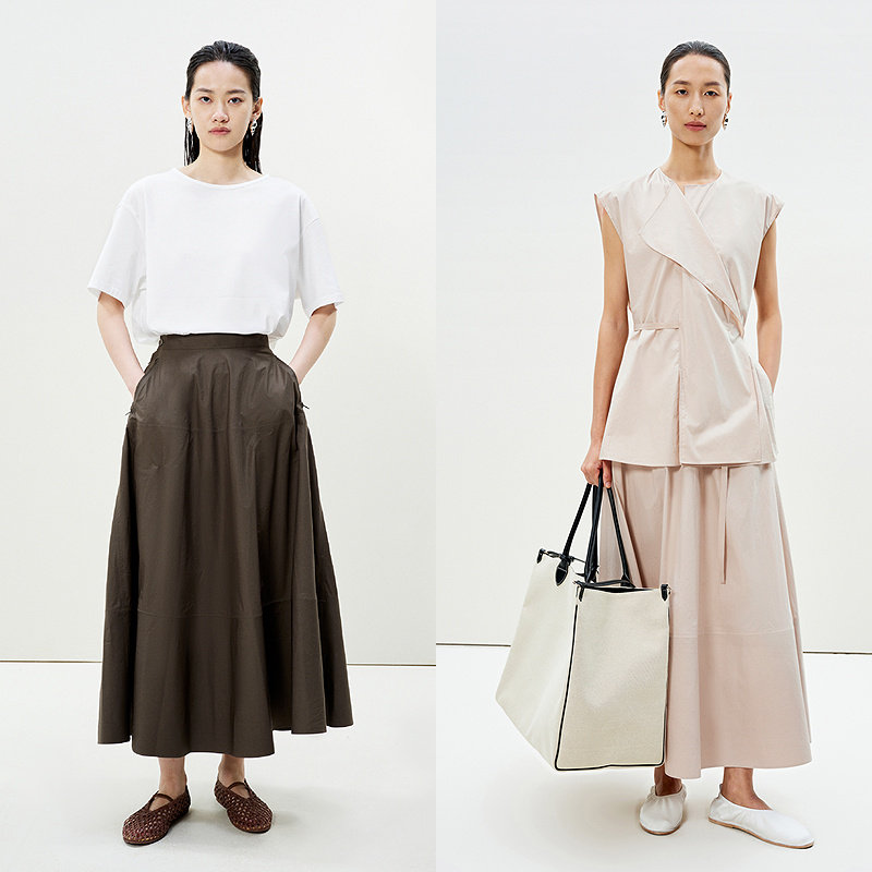 【精工系列】LESS春夏全棉半身裙高腰宽松长款气质伞裙2P5D11980