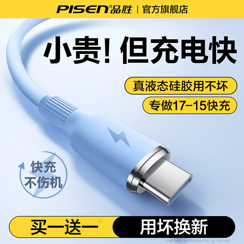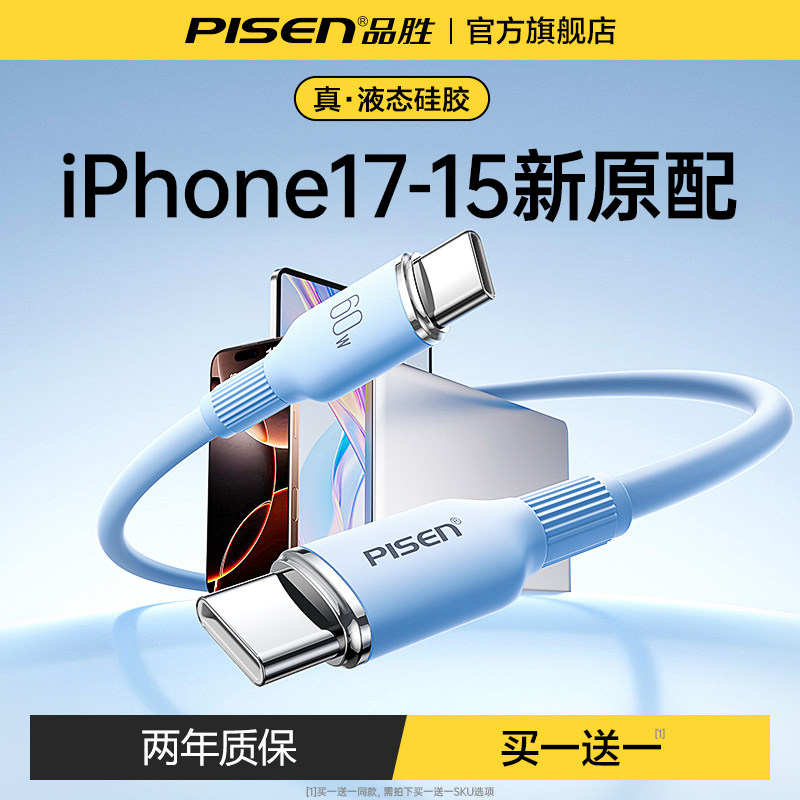 品胜适用苹果17充电线iphone16数据线15promax充电器线TypeC60W快充线CtoC接口双C手机14官方USB-C正品车载线