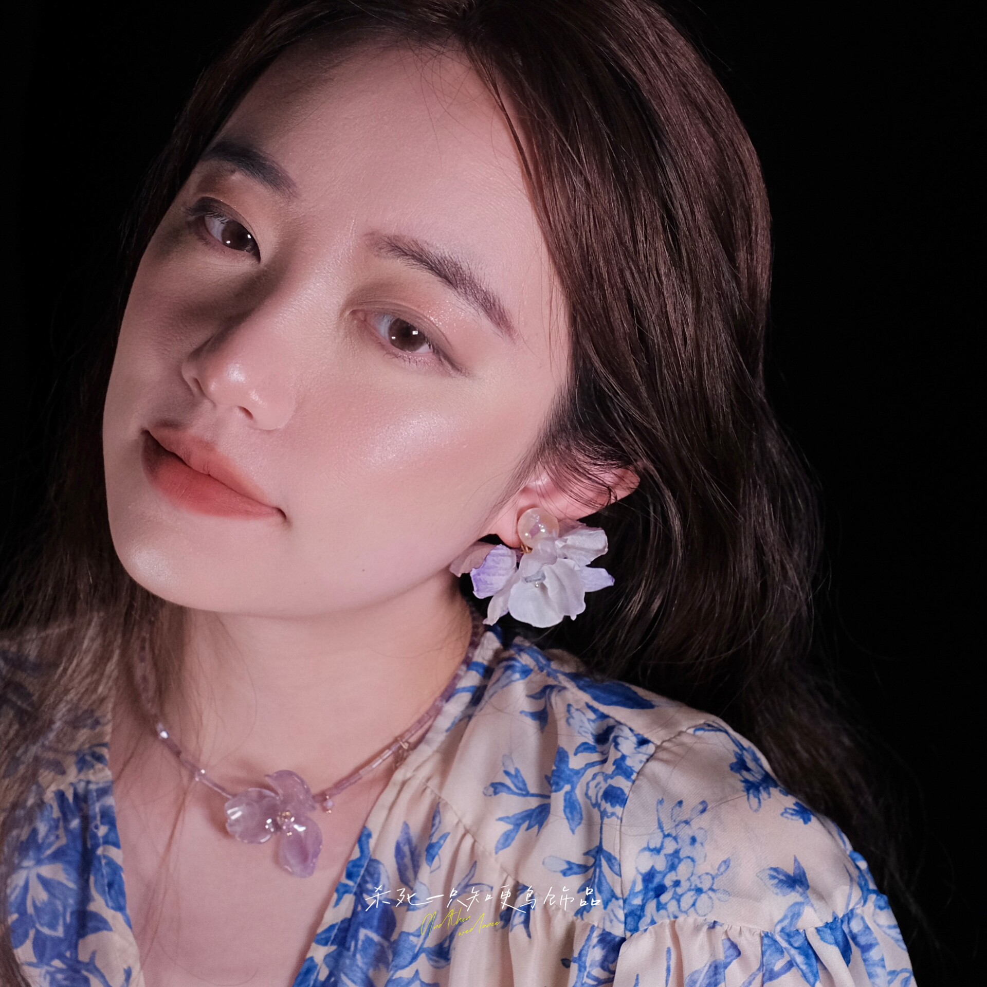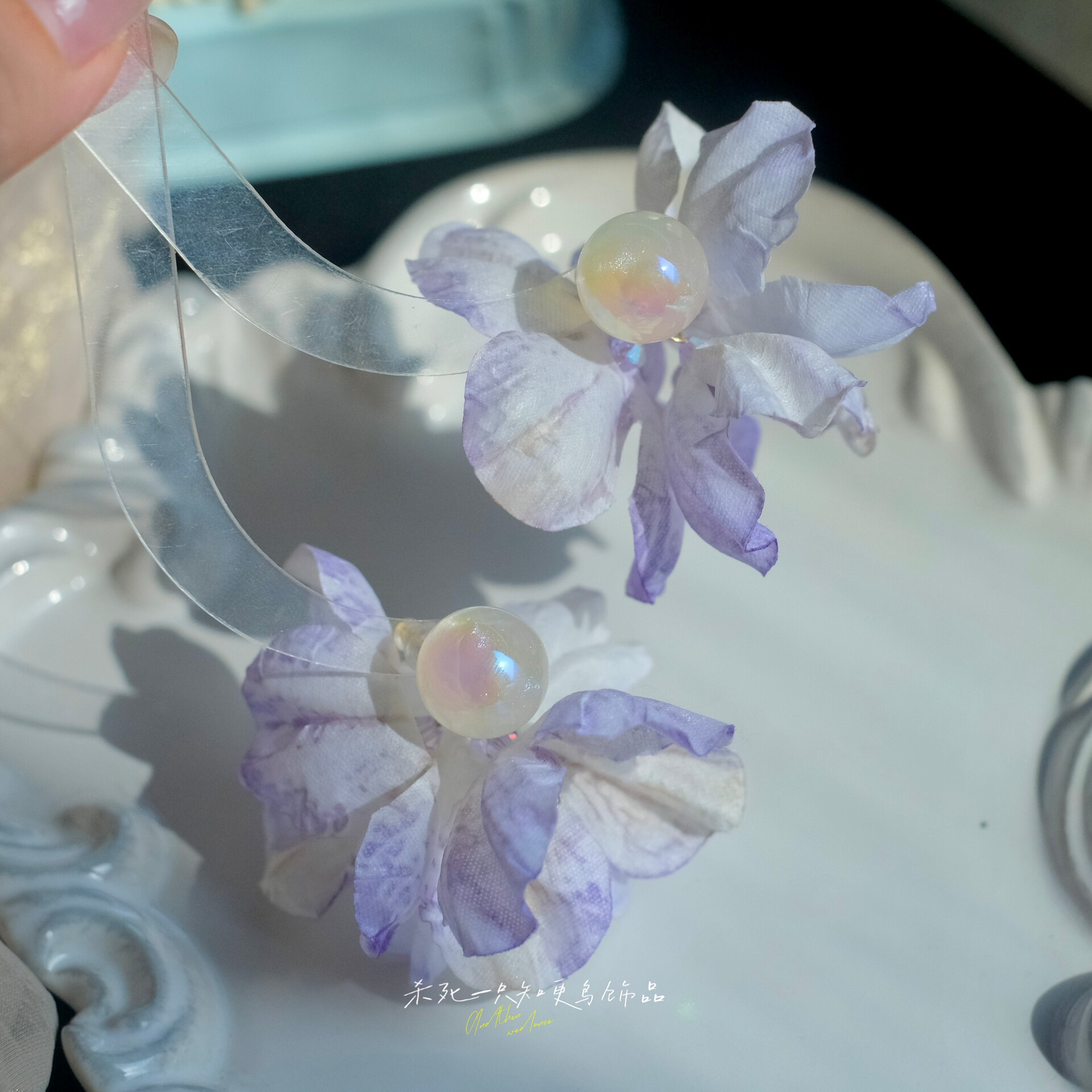 《流萤紫薇》原创超仙春夏人鱼姬珍珠花朵夸张清冷感耳环耳饰耳夹