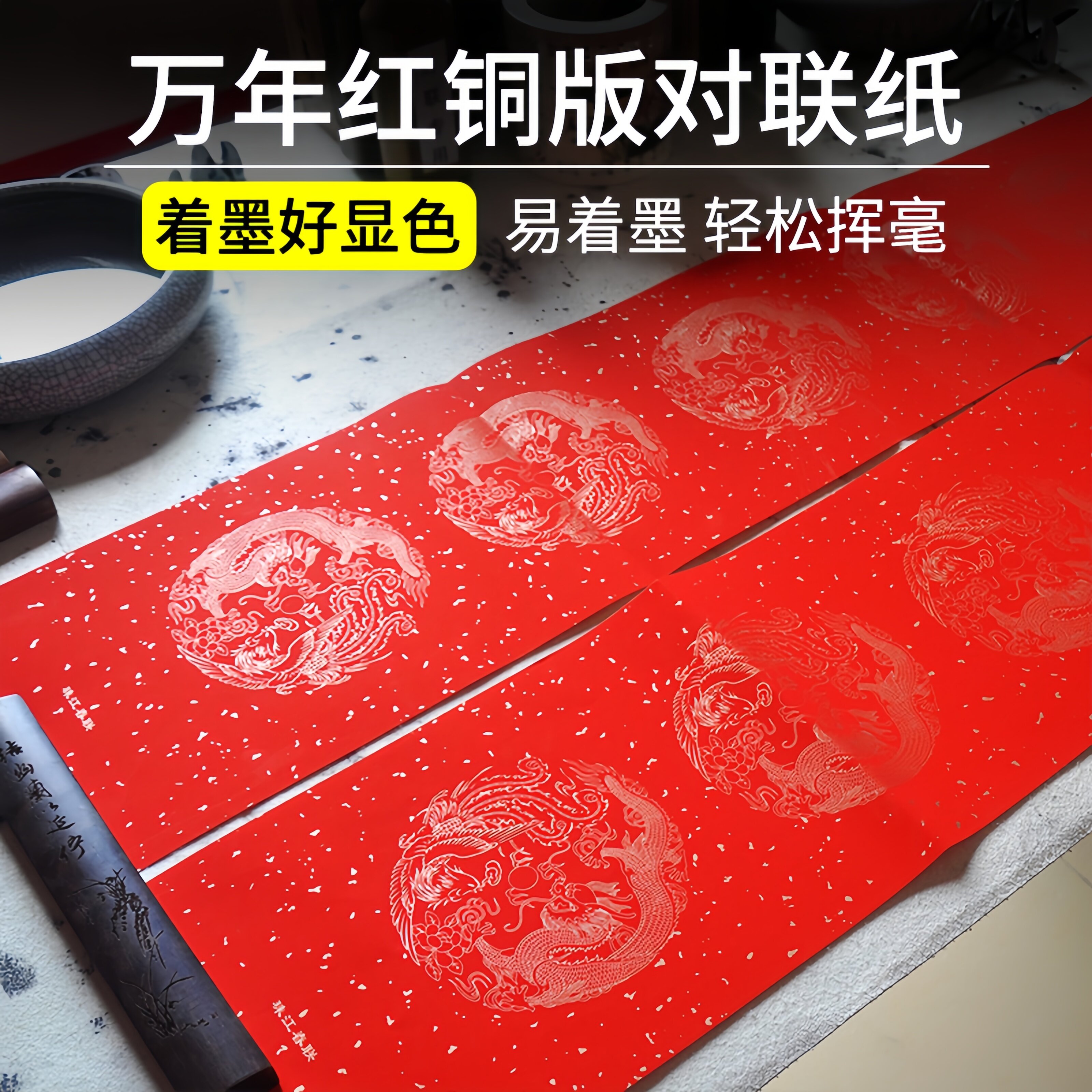 对联纸空白手写结婚红纸婚庆铜版龙凤纸写对联专用纸烫金加厚