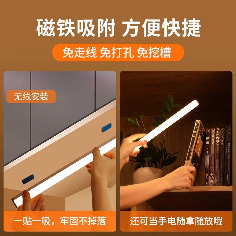 长条橱柜灯床光控LED小夜灯无布线楼道自粘感应灯泡磁吸灯条充电