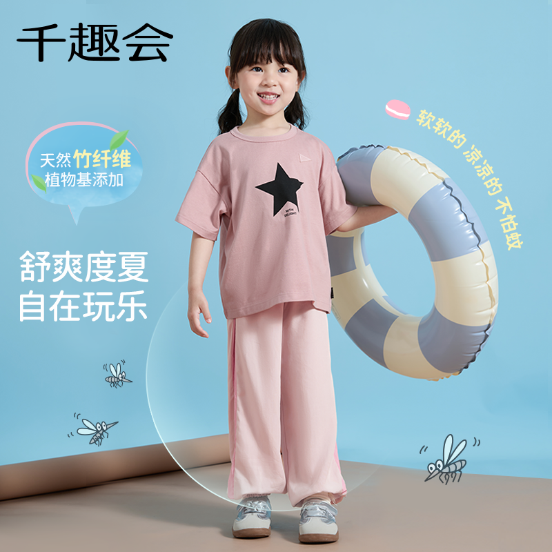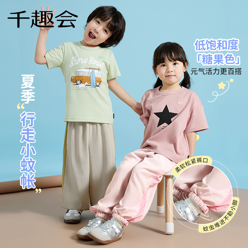 千趣会童装儿童25年新品春秋男女童【竹纤维防蚊裤】轻薄透气长裤