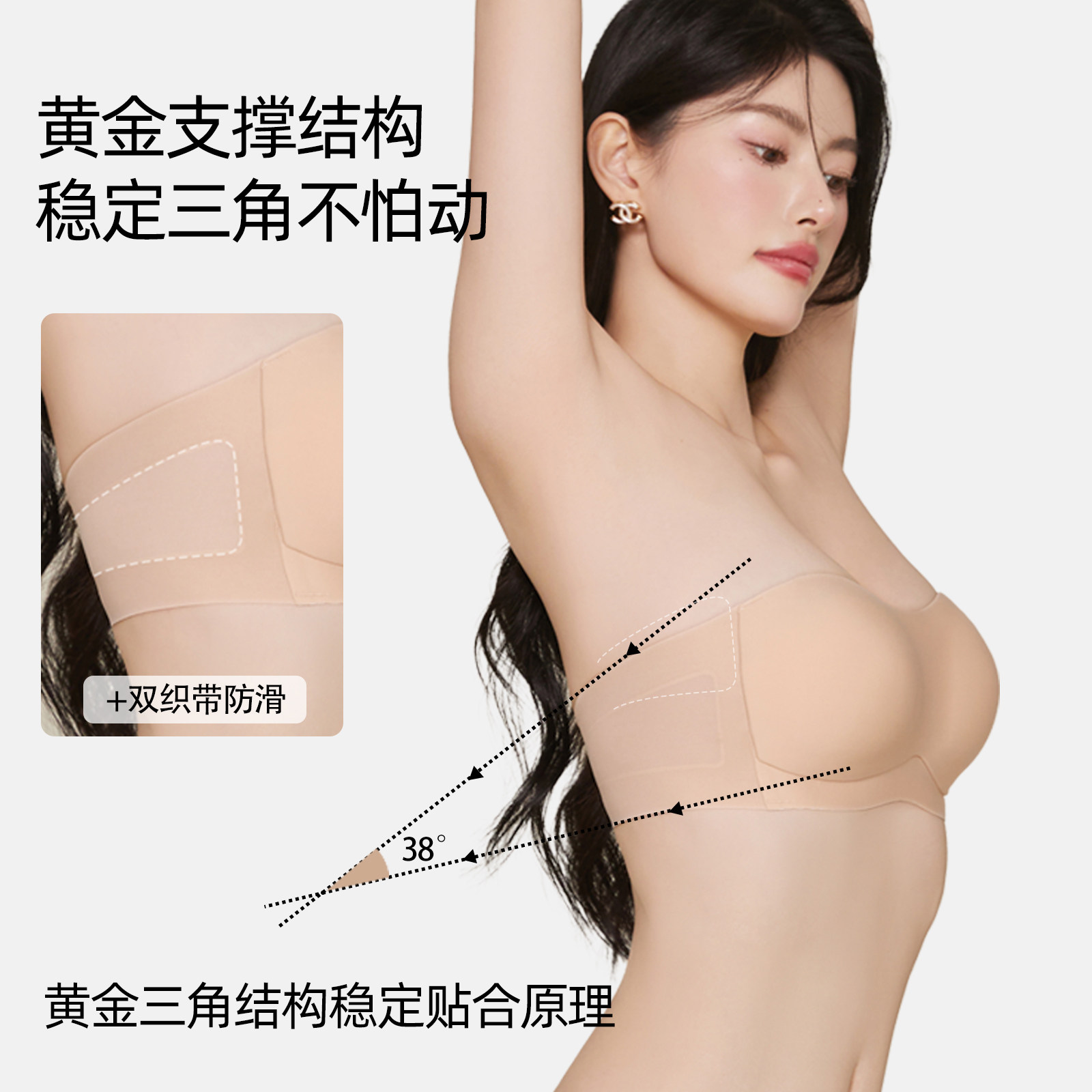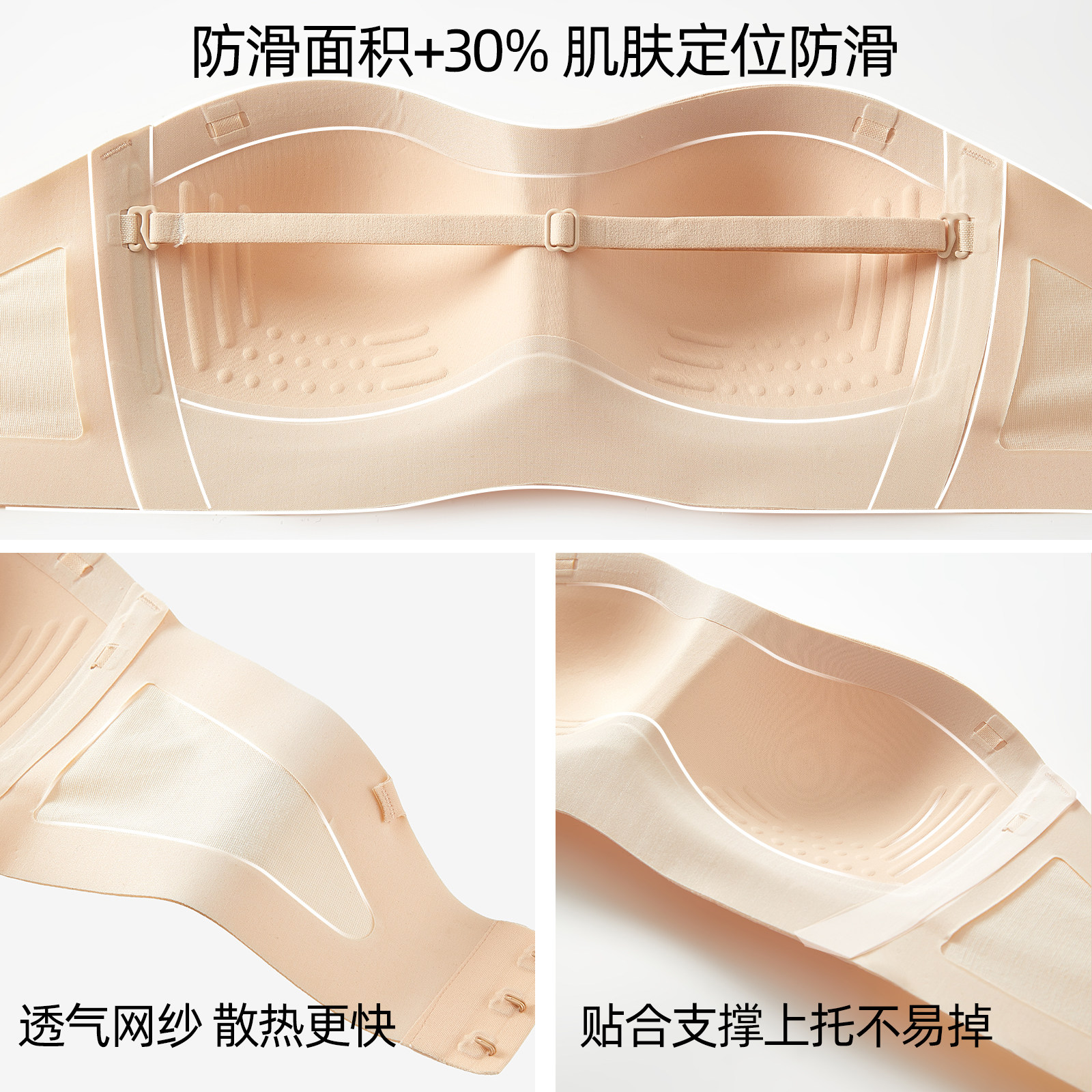菇娘家稳稳杯无肩带内衣女大胸美背抹胸裹胸隐形无痕聚拢防滑文胸