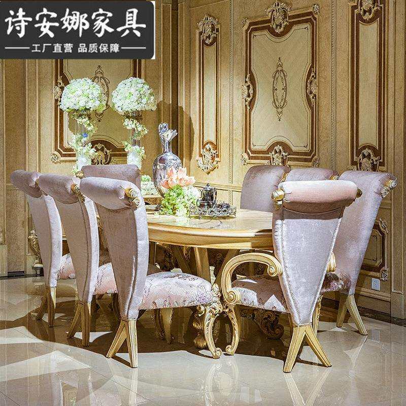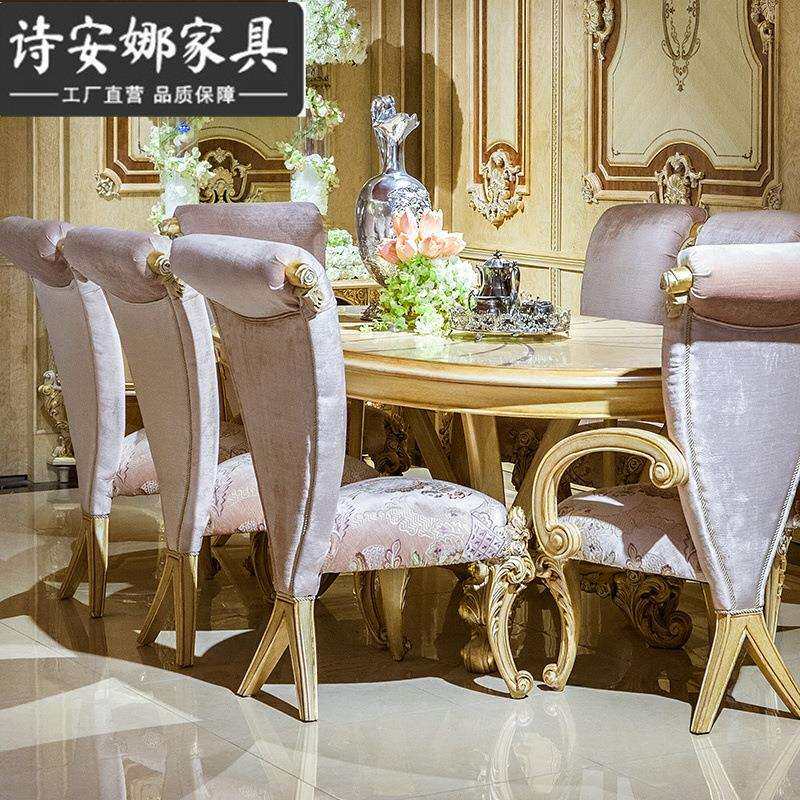 欧式餐厅家具实木纯手工雕花奢华别墅椭圆形餐桌