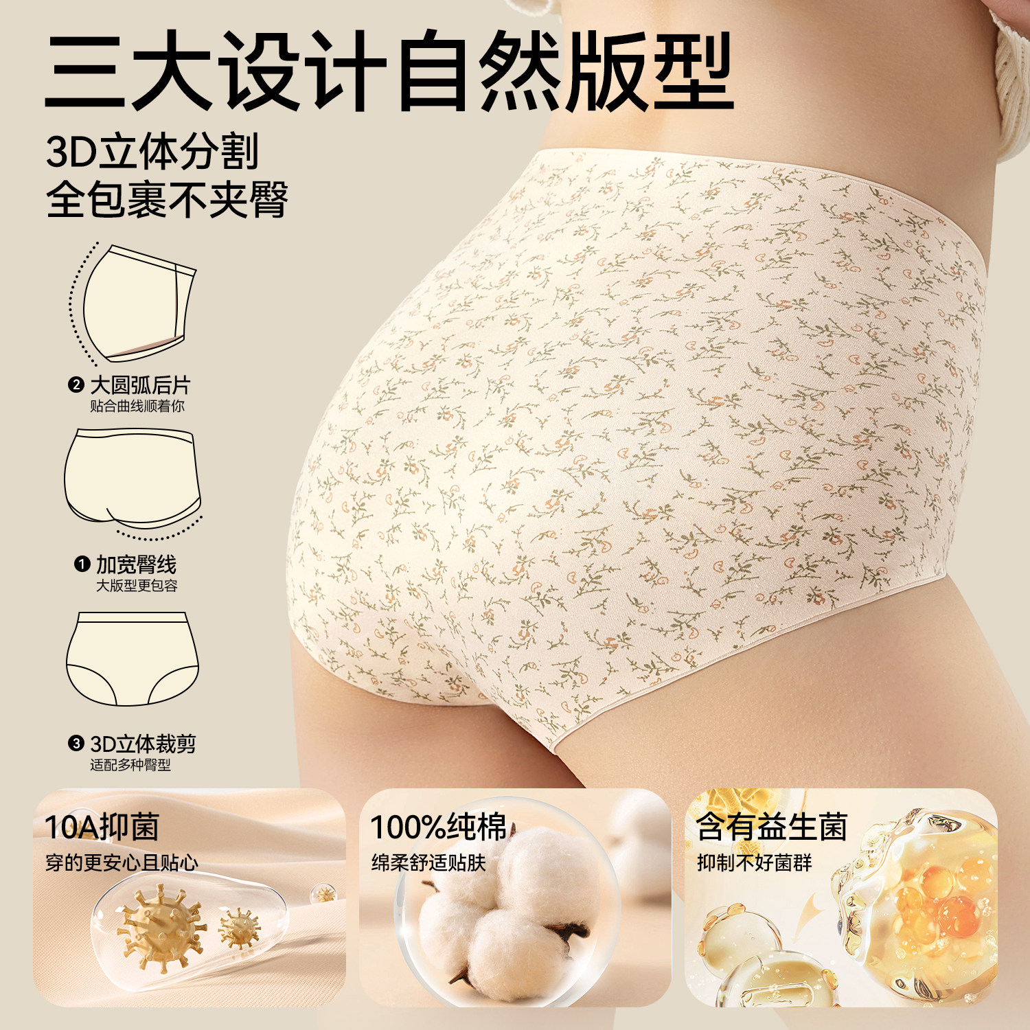 安比斯云感棉内裤女士高腰收腹提臀抗菌底裤少女生三角裤中高腰裤