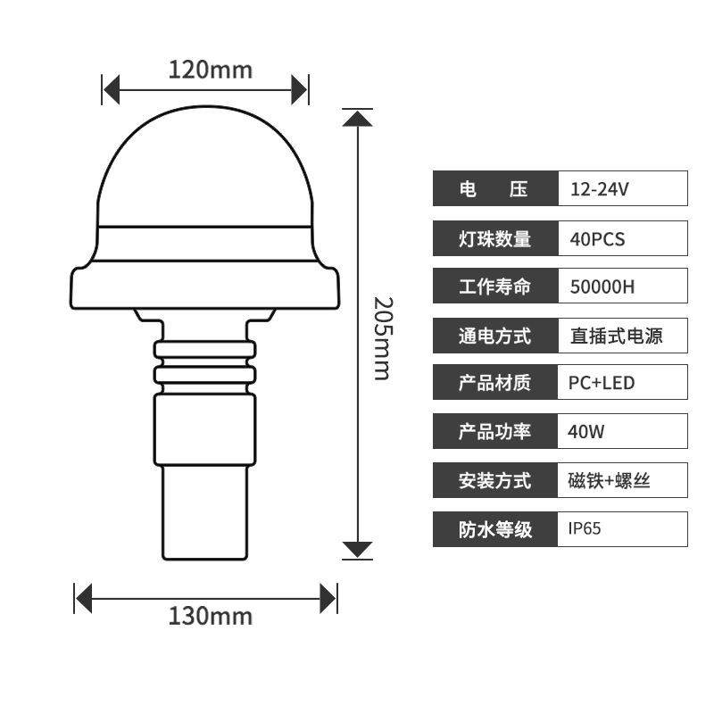 工程车警示灯 40LED重工机械爆闪灯农用车警示灯车顶频闪灯12-24V