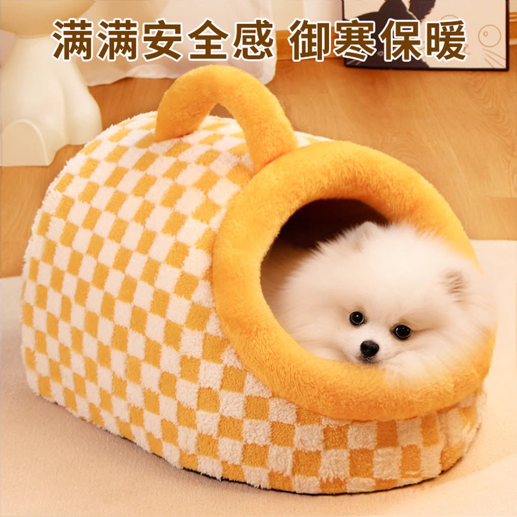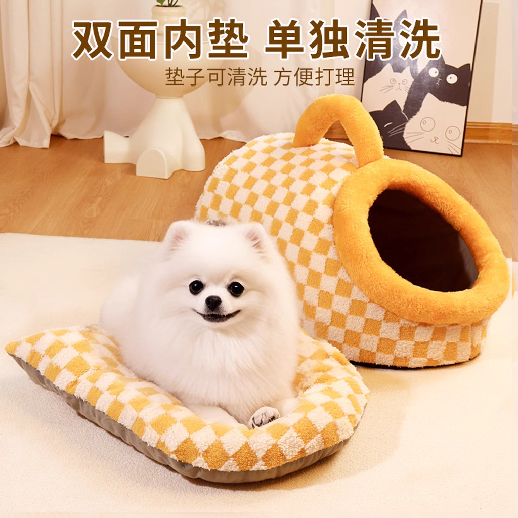 狗窝四季通用可拆洗小狗冬季保暖封闭式猫窝中小型犬狗房子蜂蜜