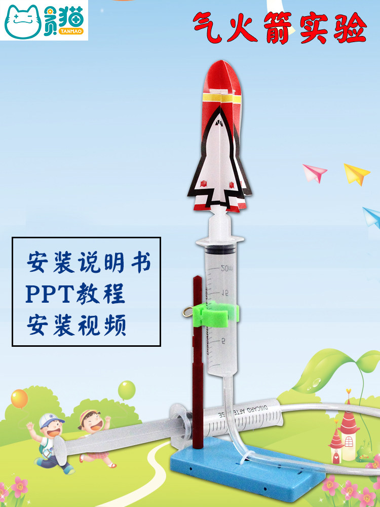 火箭发射器儿童科学实验套装空气动力小学生DIY手工制作玩气火箭
