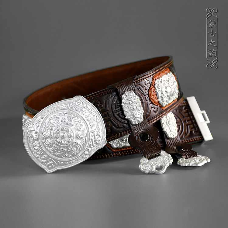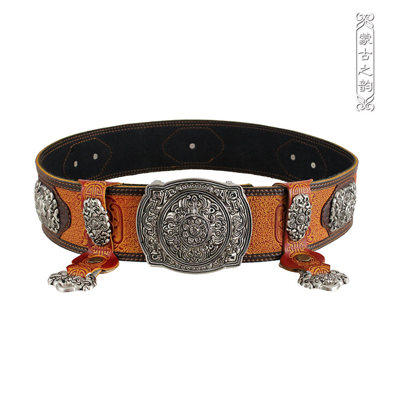 蒙古族腰带男士成人款纯牛皮复古传统皮带民族风配饰加宽加长腰封