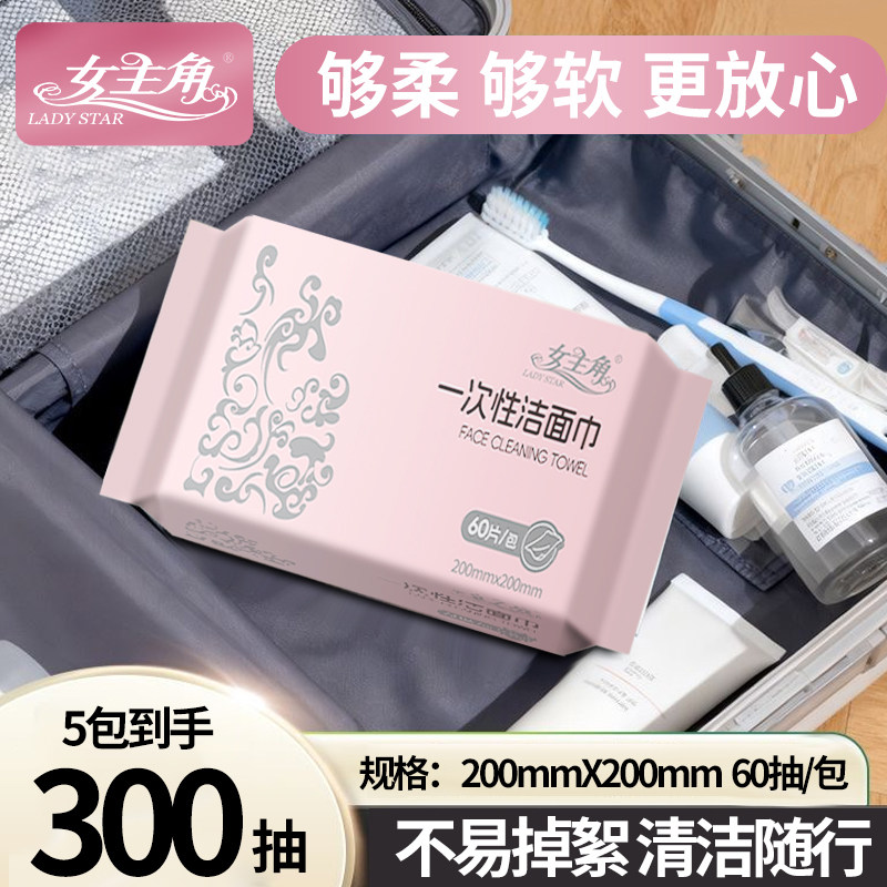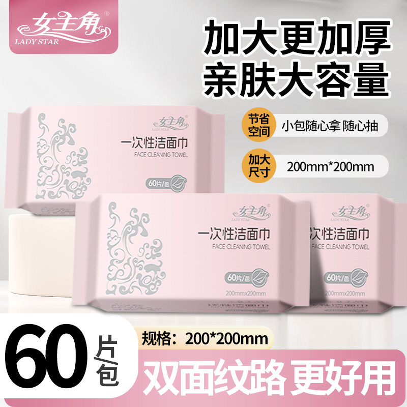 女主角一次性洗脸巾60片加宽加大绵柔亲肤柔软舒适干湿两用洗脸巾