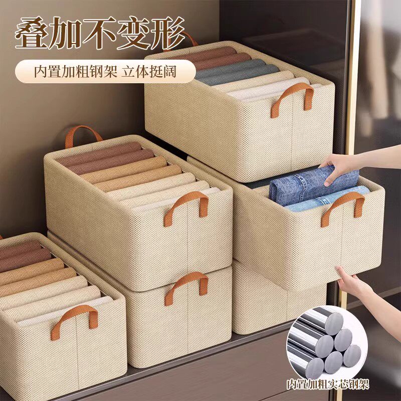 天山棉麻收纳筐衣柜收纳整理分层神器PP板可水洗衣服储物盒收纳箱
