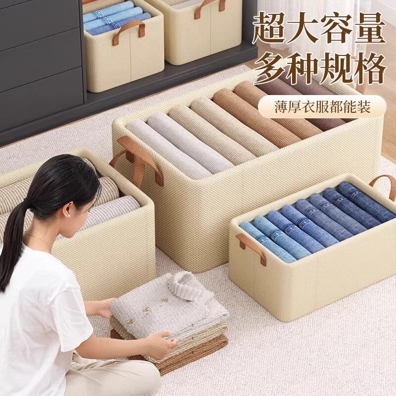 布艺收纳箱家用衣服衣物整理盒大容量超大折叠加厚衣柜储物箱神器