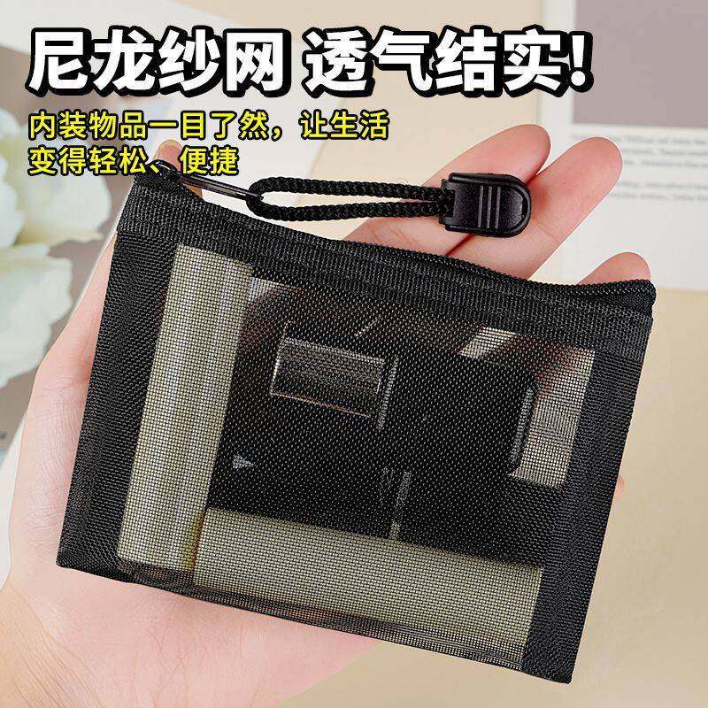 迷你零钱袋透明尼龙网纱袋拉链袋卡片小件物品耳机收纳袋随身钥匙