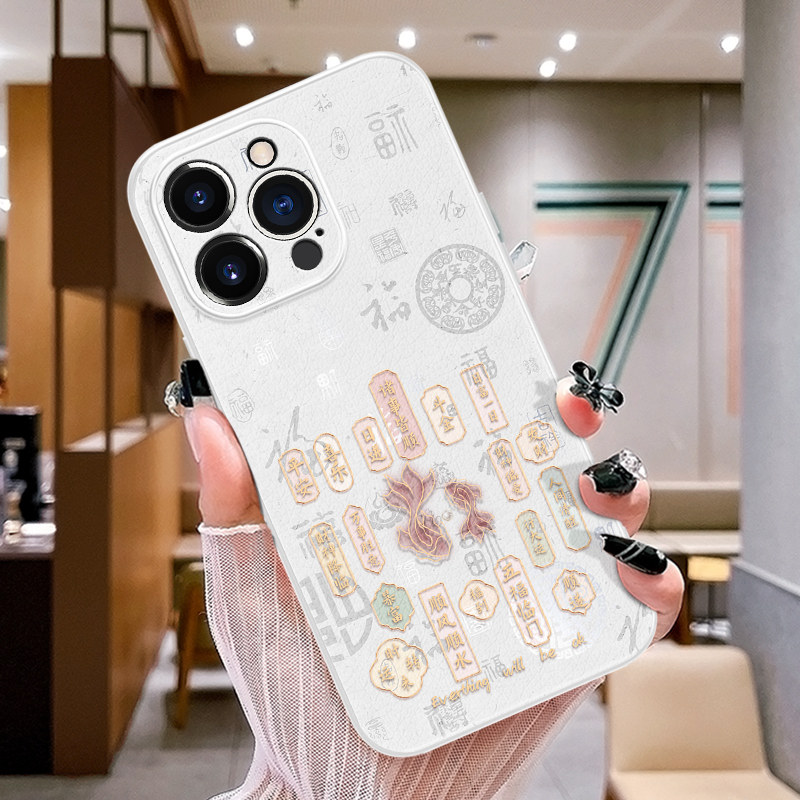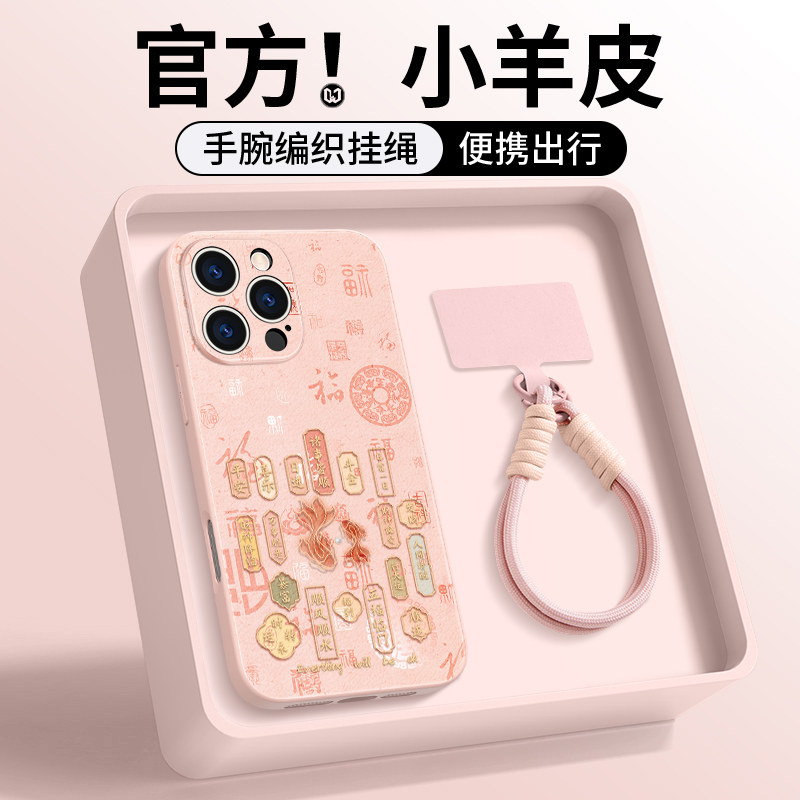 福气锦鲤适用苹果16promax手机壳新款iPhone17女15pro挂绳13pm防摔ip12小羊皮14max硅胶11全包皮纹15好运plus