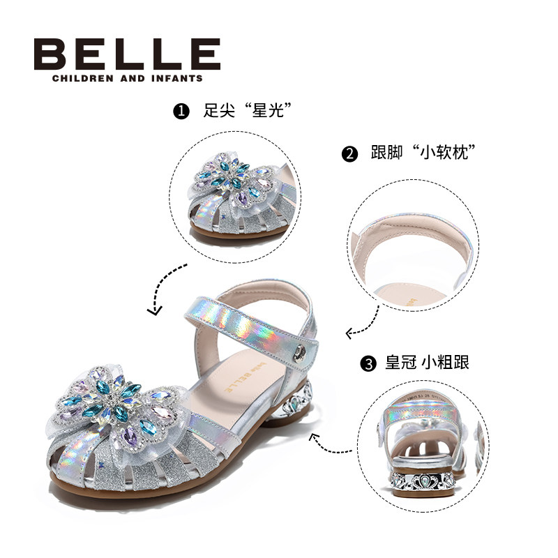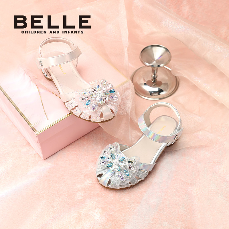 百丽童鞋女童凉鞋2026春夏新款小女孩水晶公主鞋儿童包头鞋宝宝鞋