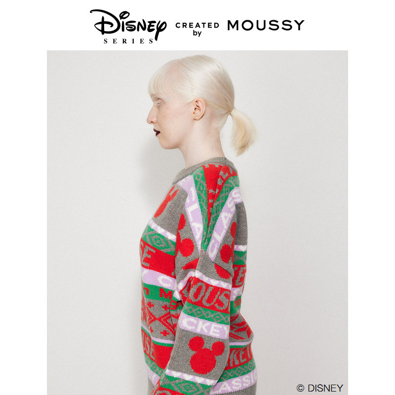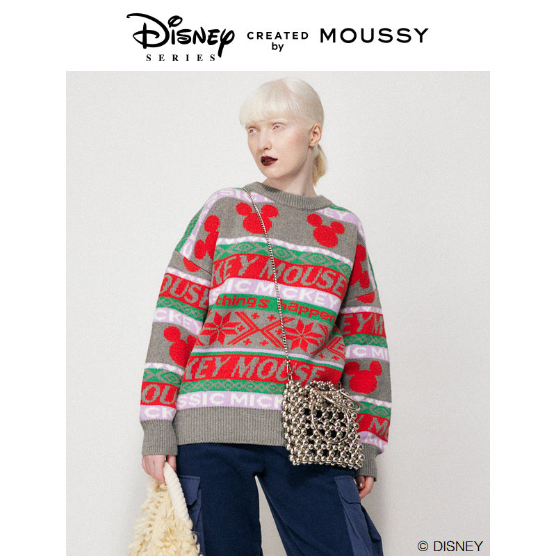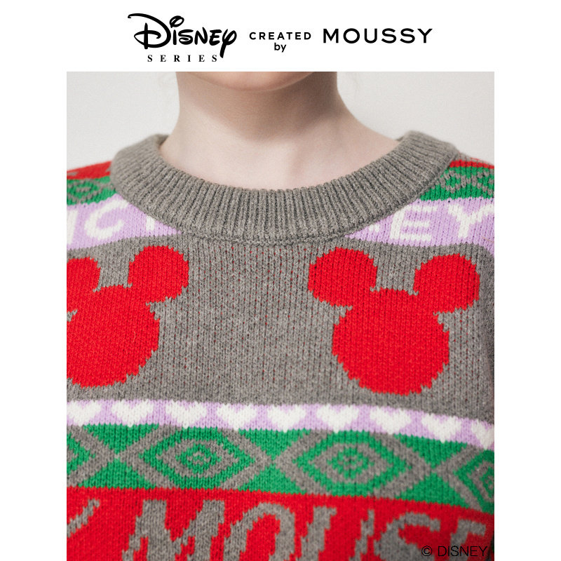 MOUSSY 迪士尼合作款米奇图案LOGO圆领针织毛衣女010GAL70-5080