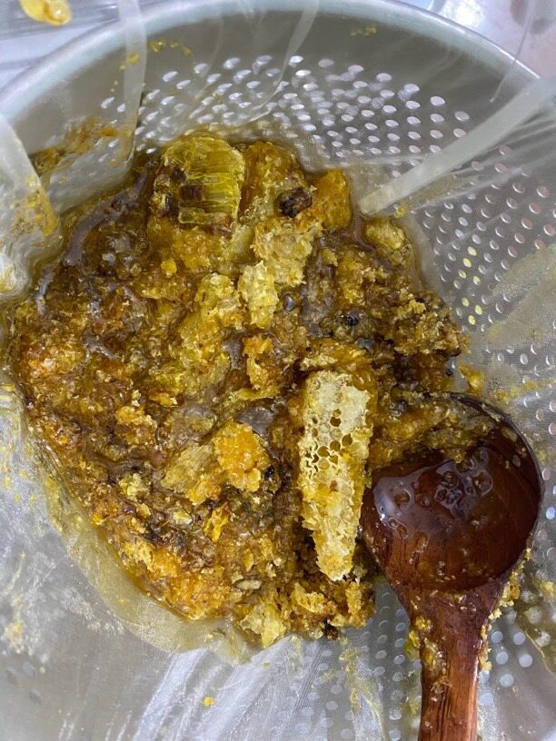乡野欢子 古法压榨土蜂蜜 一年一取巢蜜蜜汁 有花粉不清澈 500克