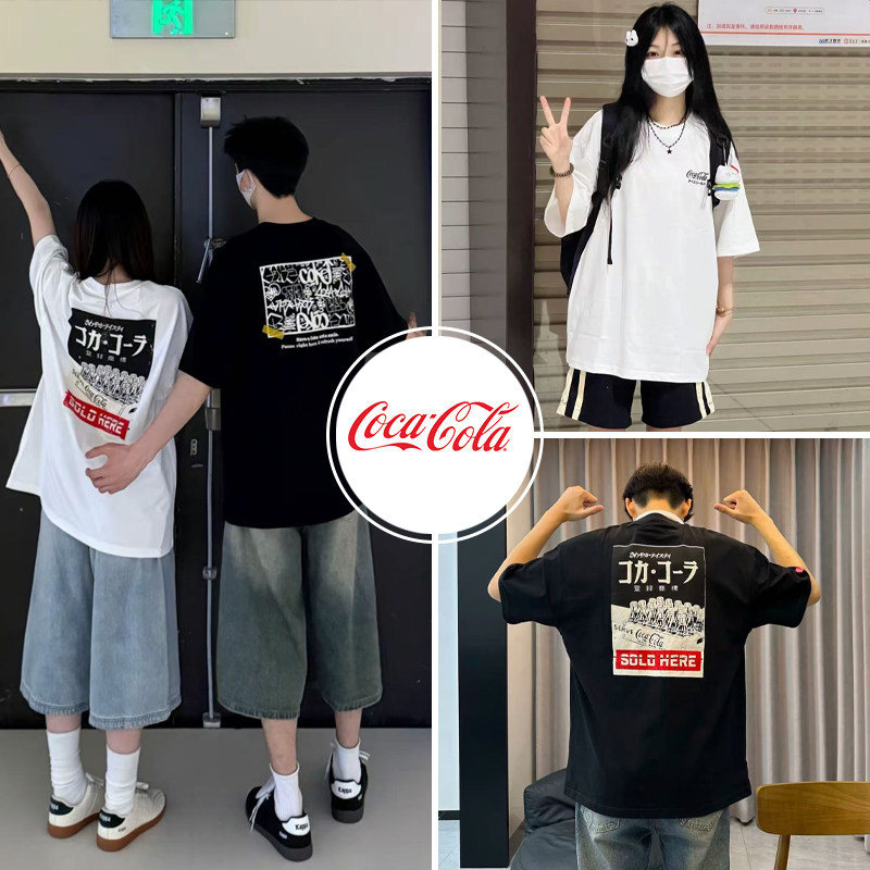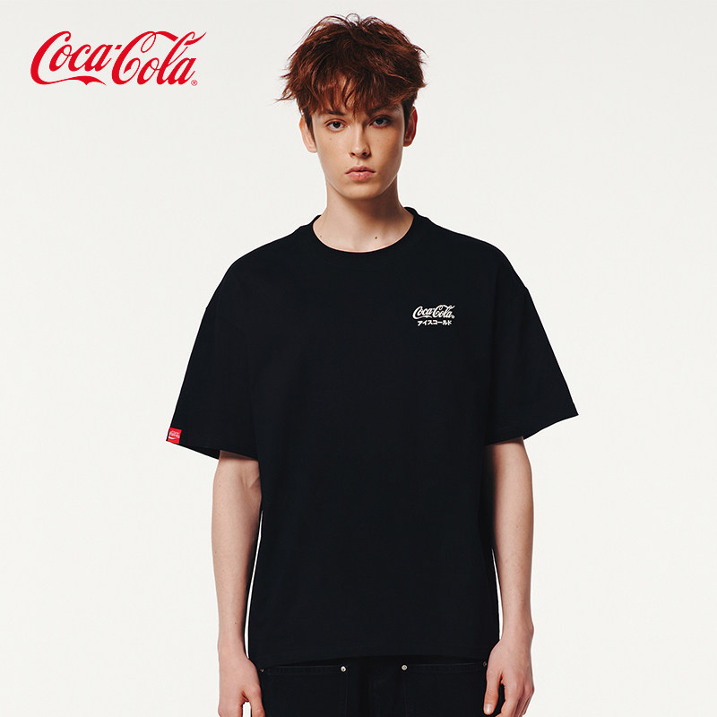 Coca-Cola/可口可乐 短袖T恤男美式复古字母发泡印花落肩上衣半袖