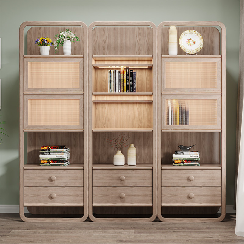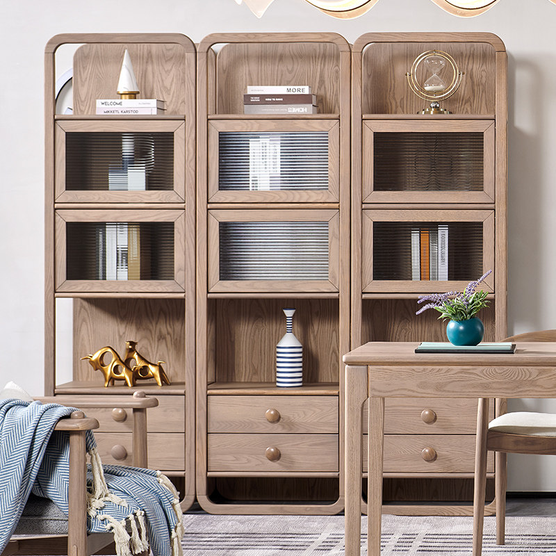 政府补贴全实木书柜 简约落地白蜡木储物收纳柜 日式自由组合书橱