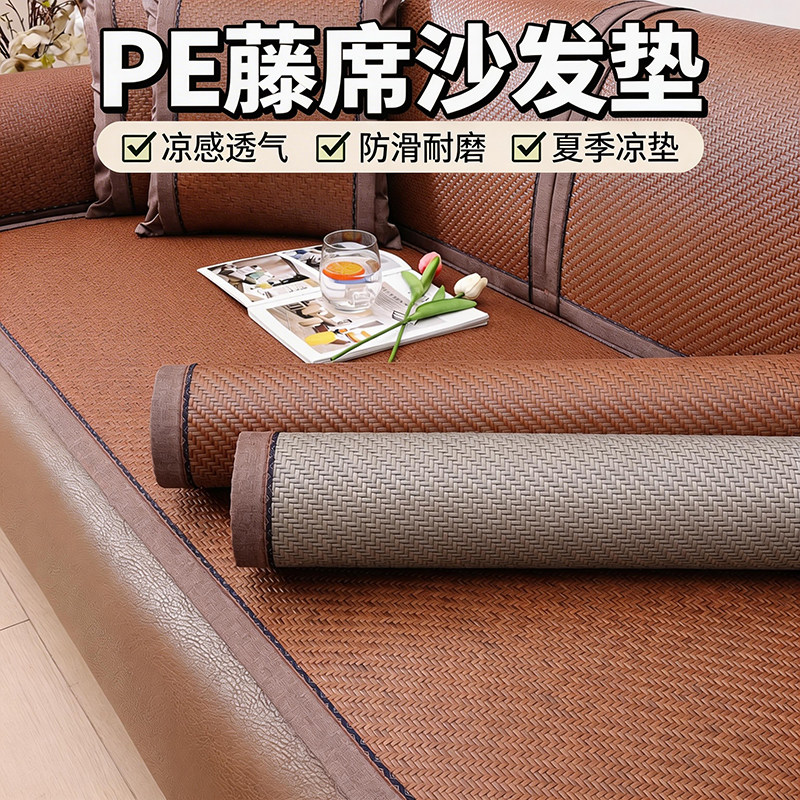 新款PE藤席沙发垫夏季凉席坐垫子冰丝飘窗凉坐垫藤沙发罩套防滑