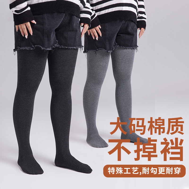 菇娘家热压连裤袜高支棉羊毛打底裤女灰色大码秋冬黑色保暖瘦腿袜