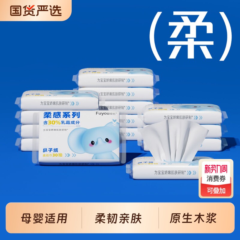 福佑乳霜纸云柔巾30抽新生儿手口专用抽纸母婴保湿便携式乳霜纸巾