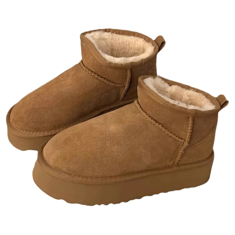 miu家厚底雪地靴女冬季真皮短靴羊毛侧拉链增高厚底加绒毛毛棉鞋