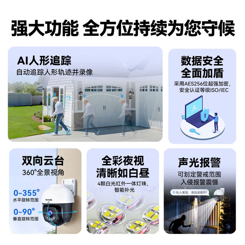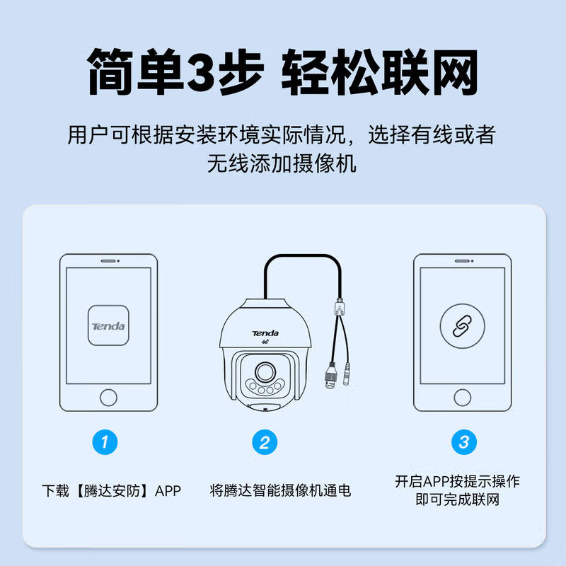 Tenda腾达4g双卡摄像头户外终身免充值流量家用监控器360度无死角带夜视全景旋转云台户外家用手机远程