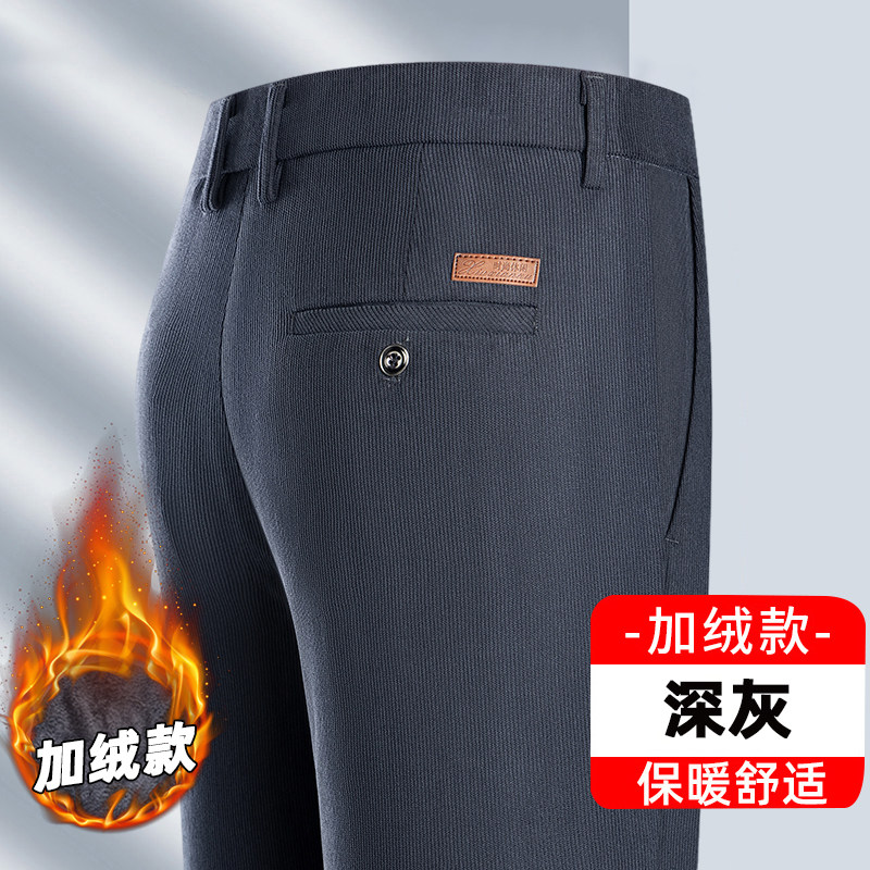 罗蒙加绒加厚男士休闲裤商务休闲秋冬季新款弹力直筒西裤秋冬款