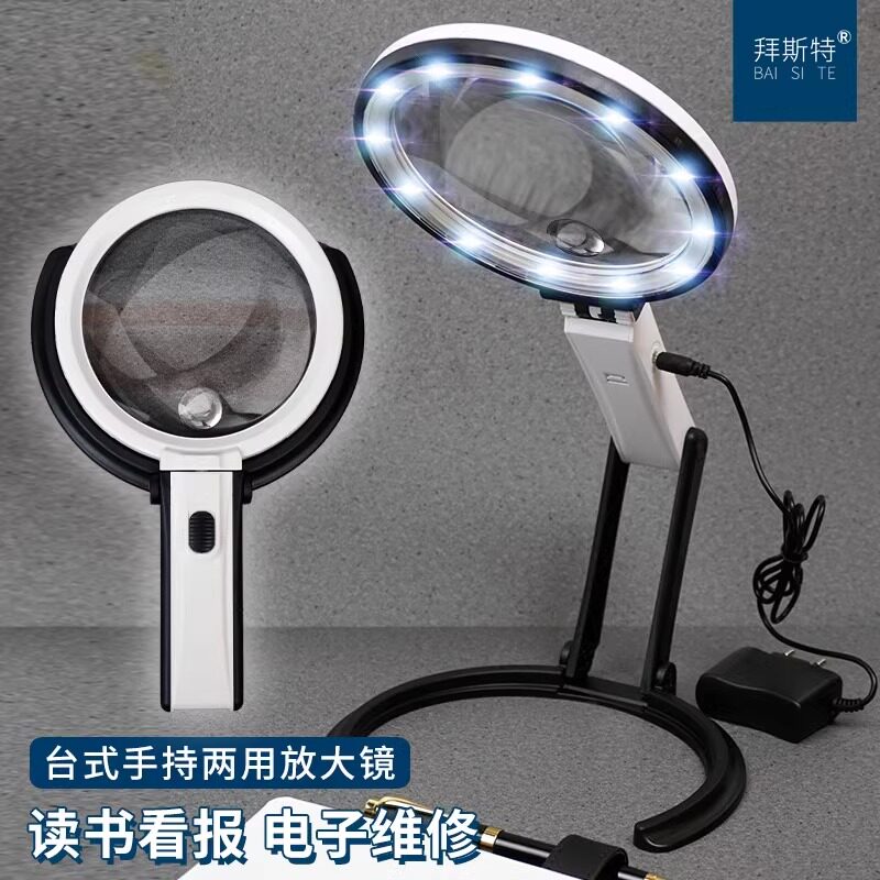 折叠30倍台式放大镜维修雕刻手工DIY老人阅读手持带灯led便携式