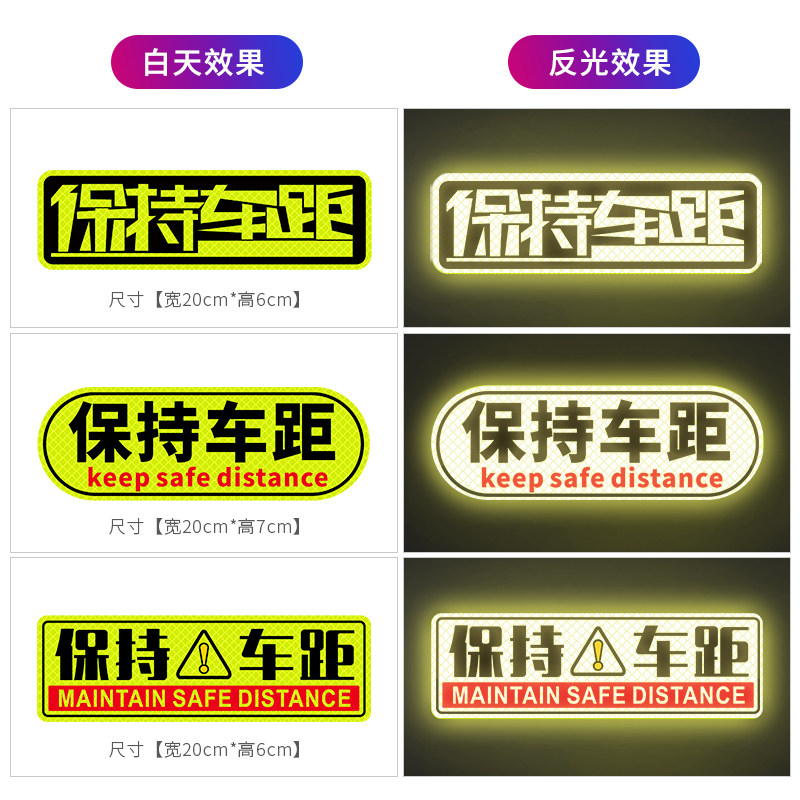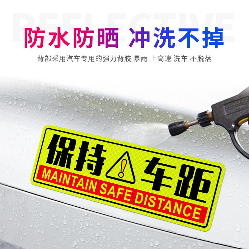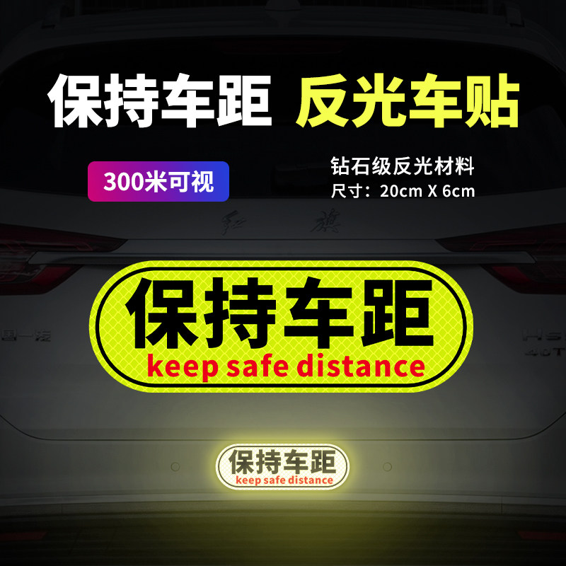 保持车距车贴反光贴夜间警示提示贴汽车贴纸三轮车电动车摩托车贴