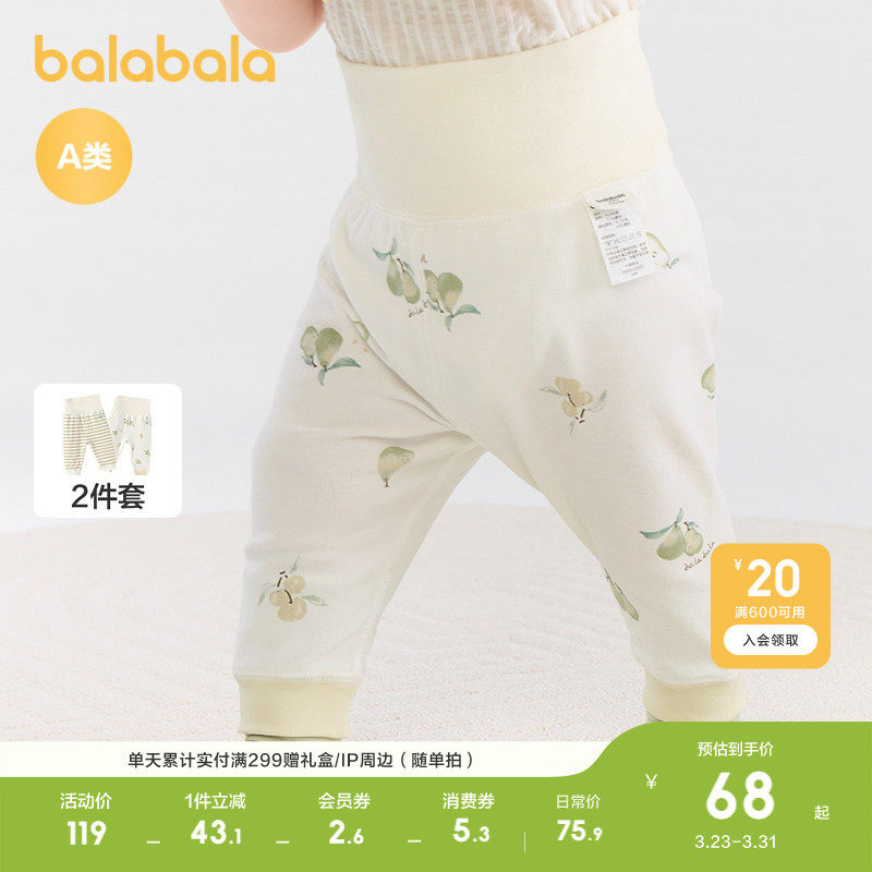 巴拉巴拉童装婴儿裤子下装两件装秋2026新款宝宝衣服高腰护肚舒适