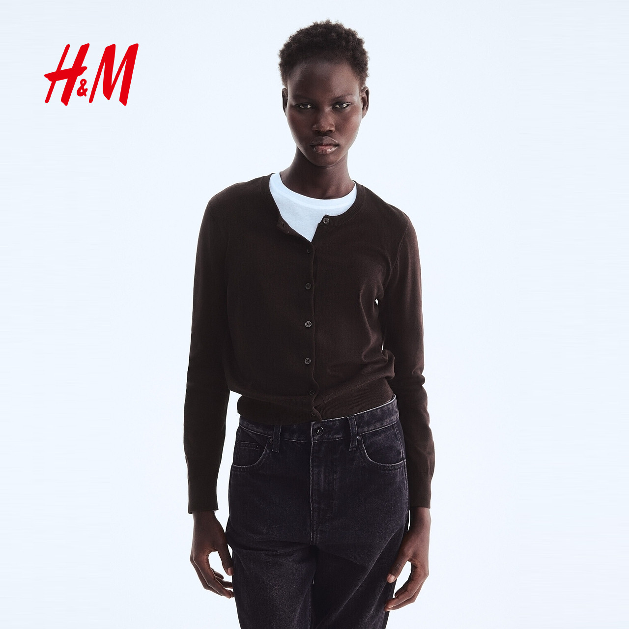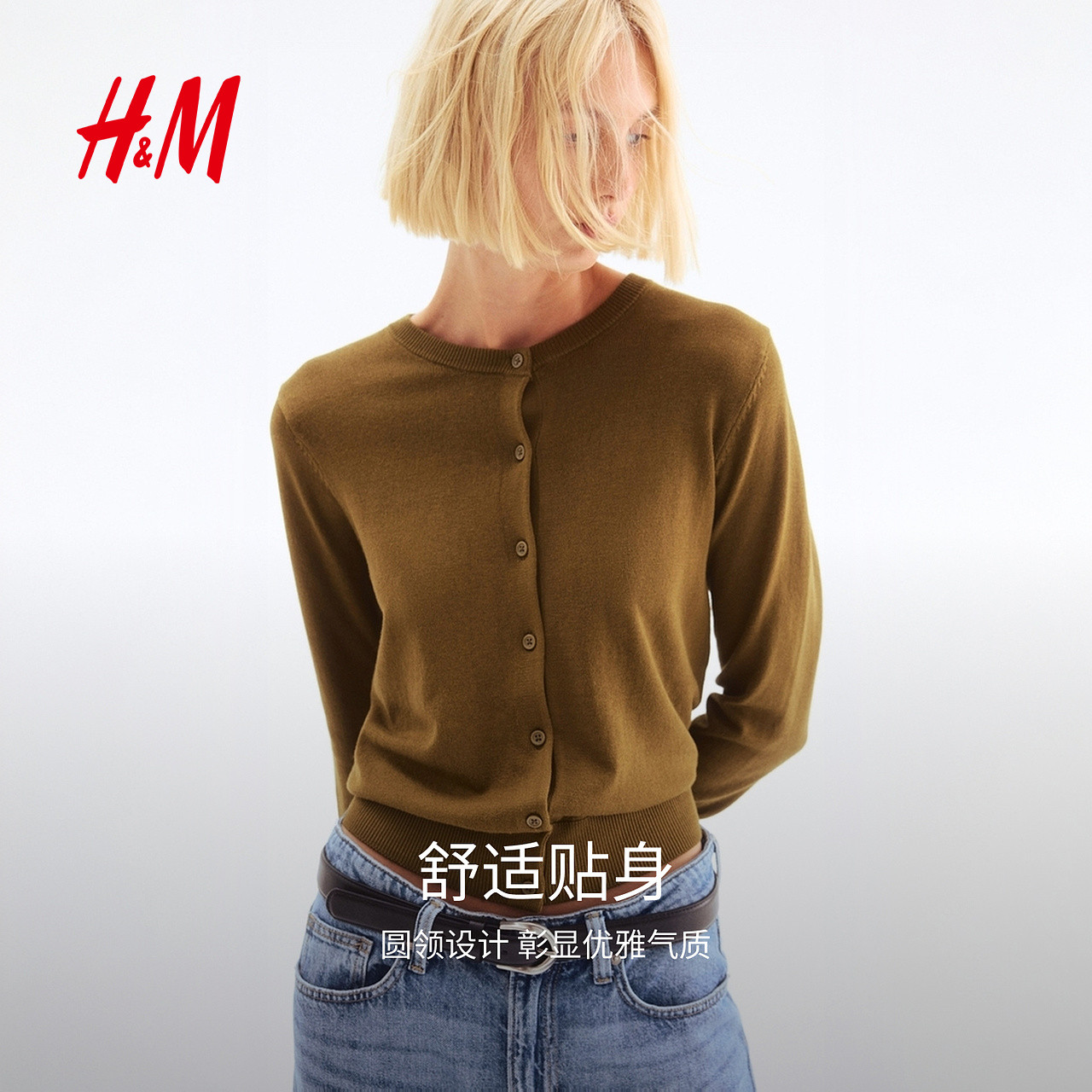 HM女装毛针织衫春季慵懒打底衫短款开衫薄款外套0579541