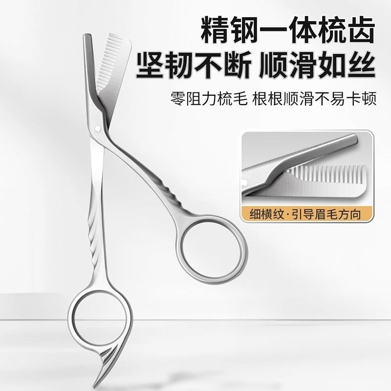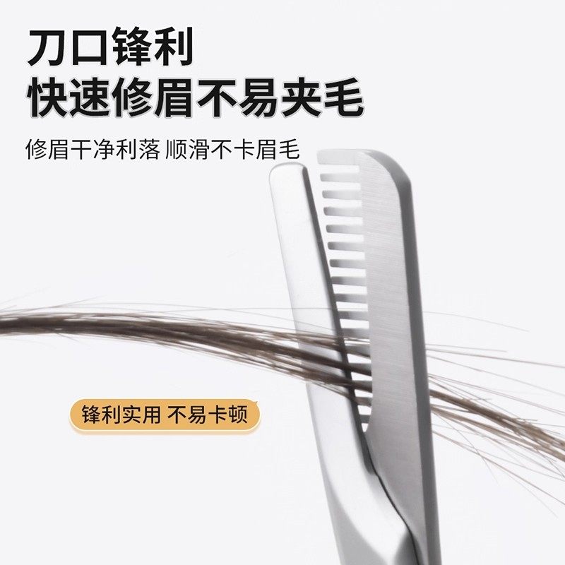 不夹毛灰色修眉剪眉毛美容修剪金属一体带梳不锈钢剪刀修剪神器