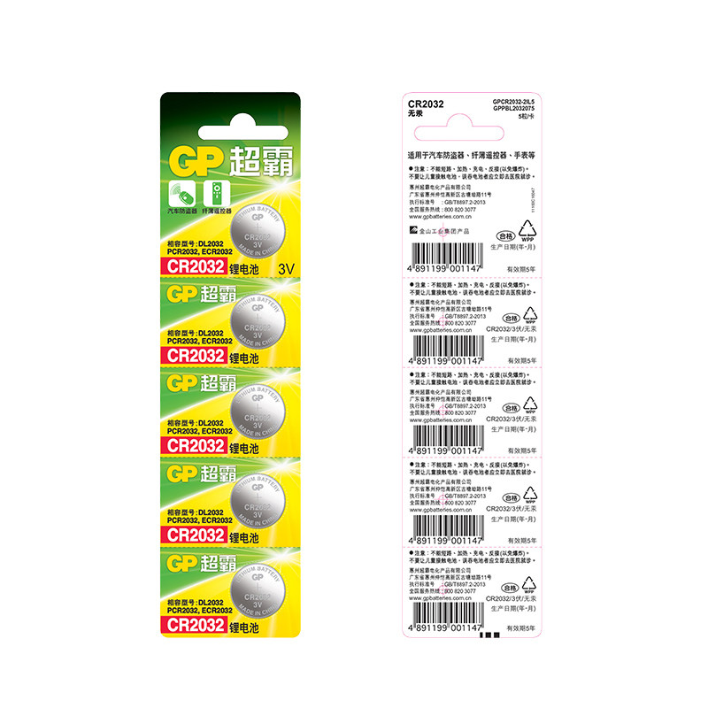 GP超霸 CR2032锂纽扣电池3V主板体重秤汽车遥控器锁匙机顶盒电子
