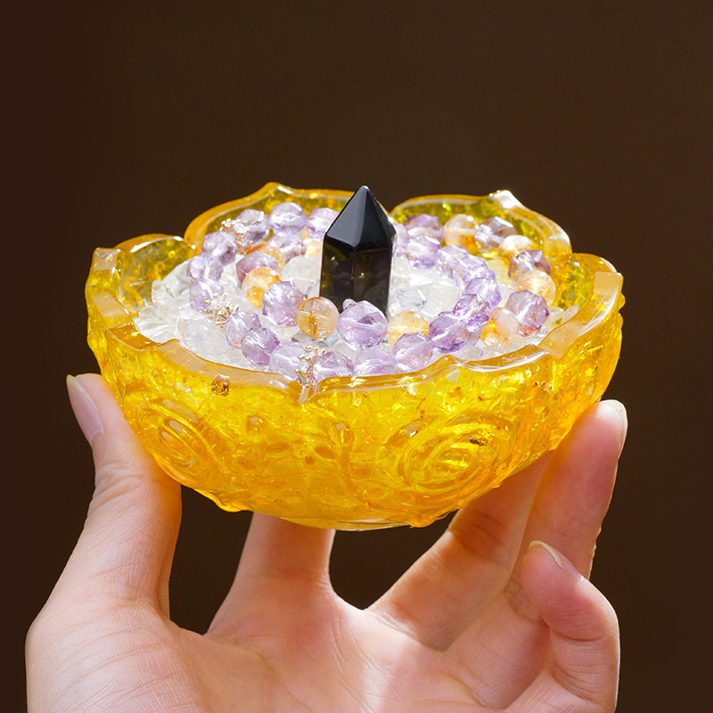 天然水晶碎石树脂滴胶消磁碗水晶能量净化首饰收纳桌面摆件消磁石