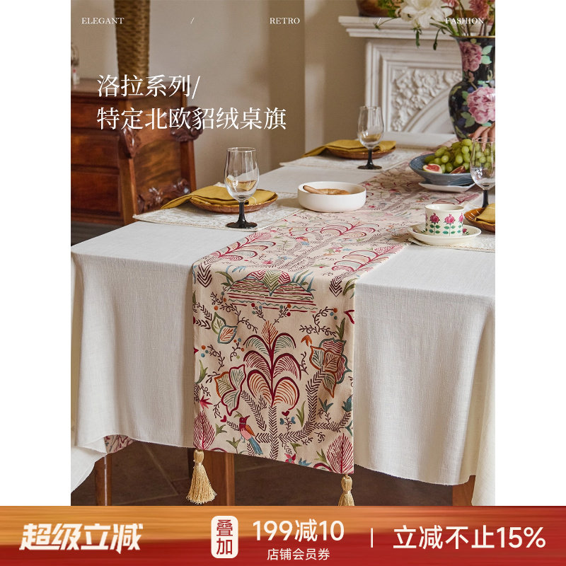 蜡笔派洛拉桌旗法式田园茶几布轻奢高端氛围餐桌盖布边柜盖布茶旗