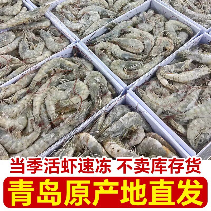 新鲜大虾鲜活青岛大虾冷冻海捕白对虾大号基围虾非青虾海鲜水产