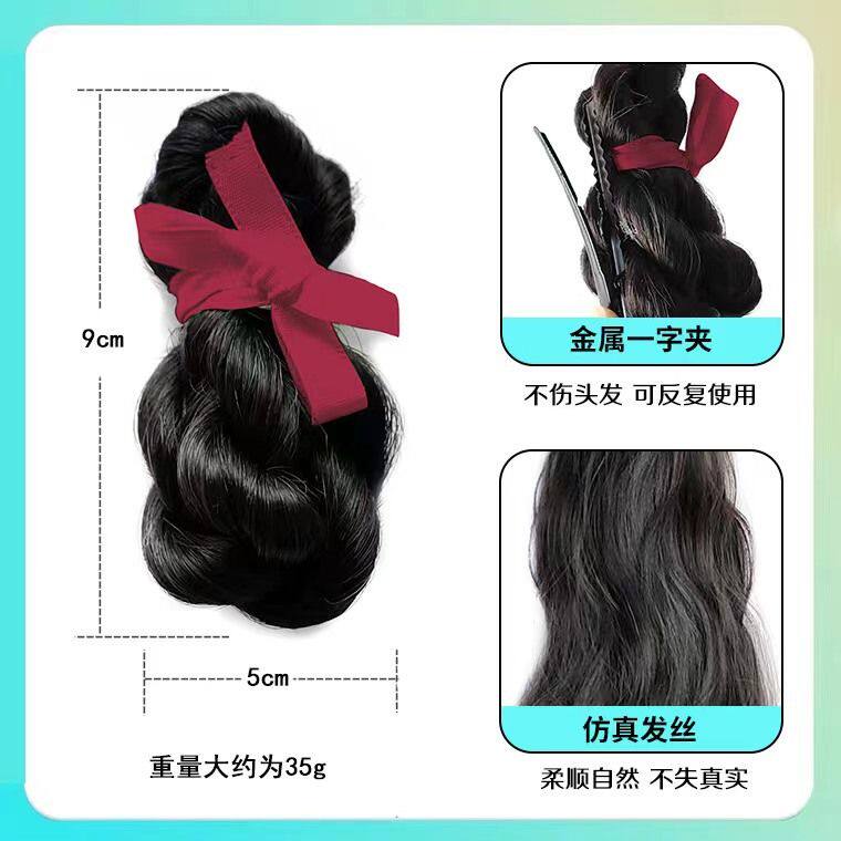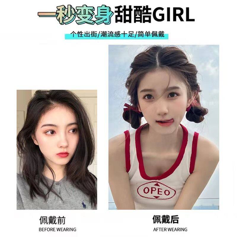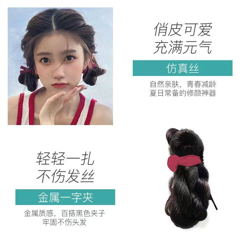 桑稚同款丝带丸子头假发女发包蝴蝶结发饰双马尾头饰女盘发高温丝