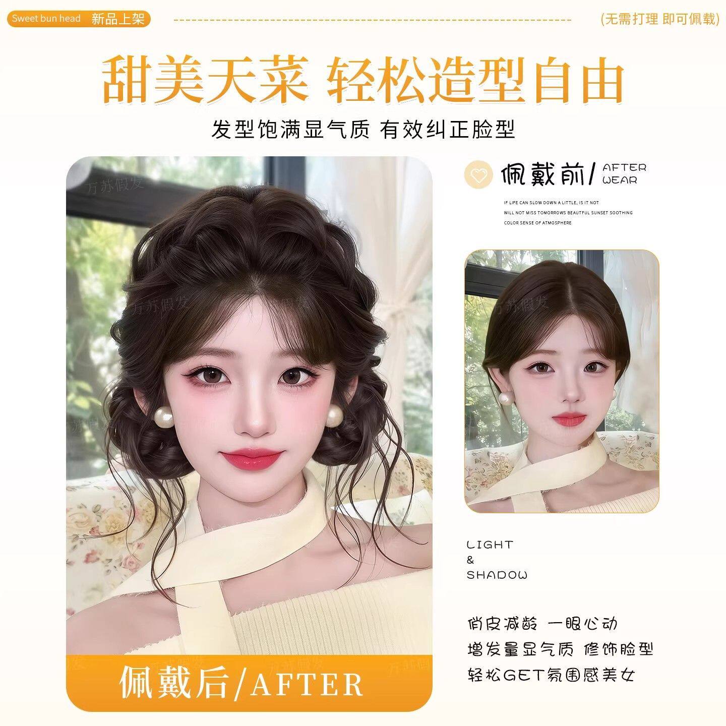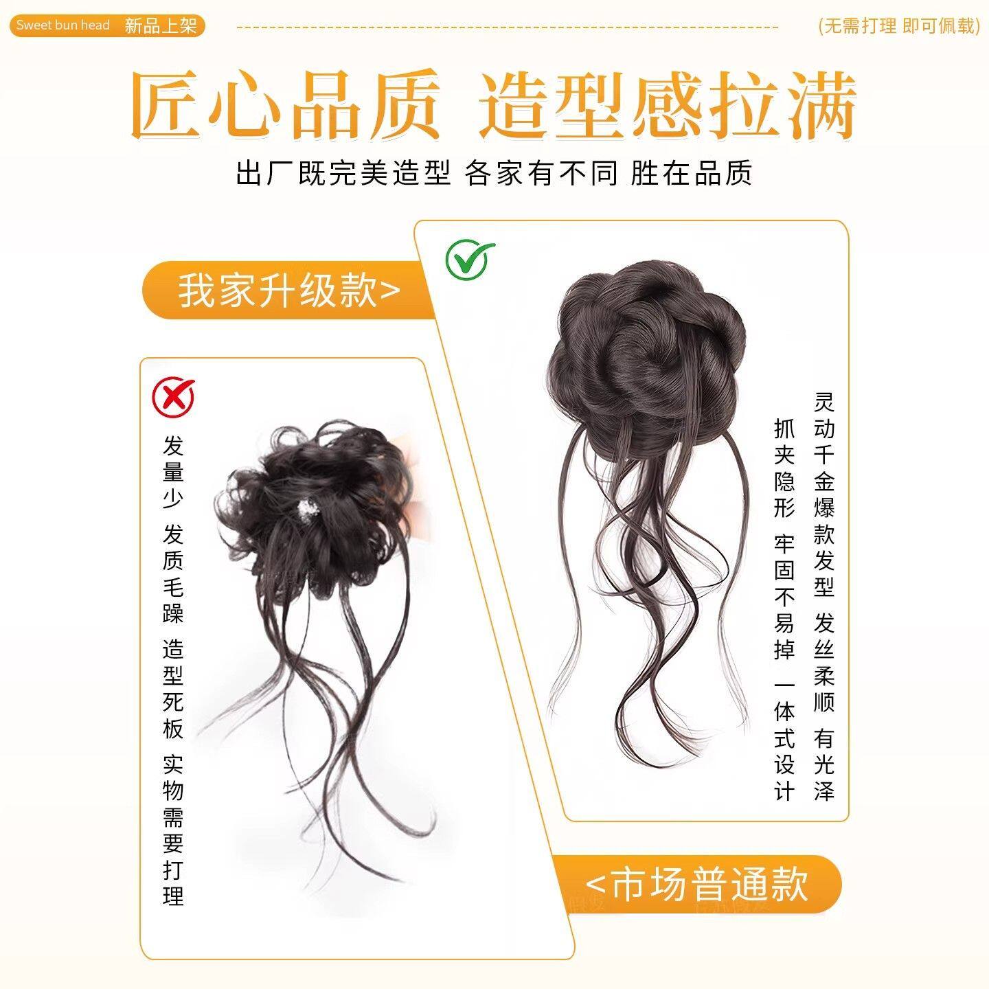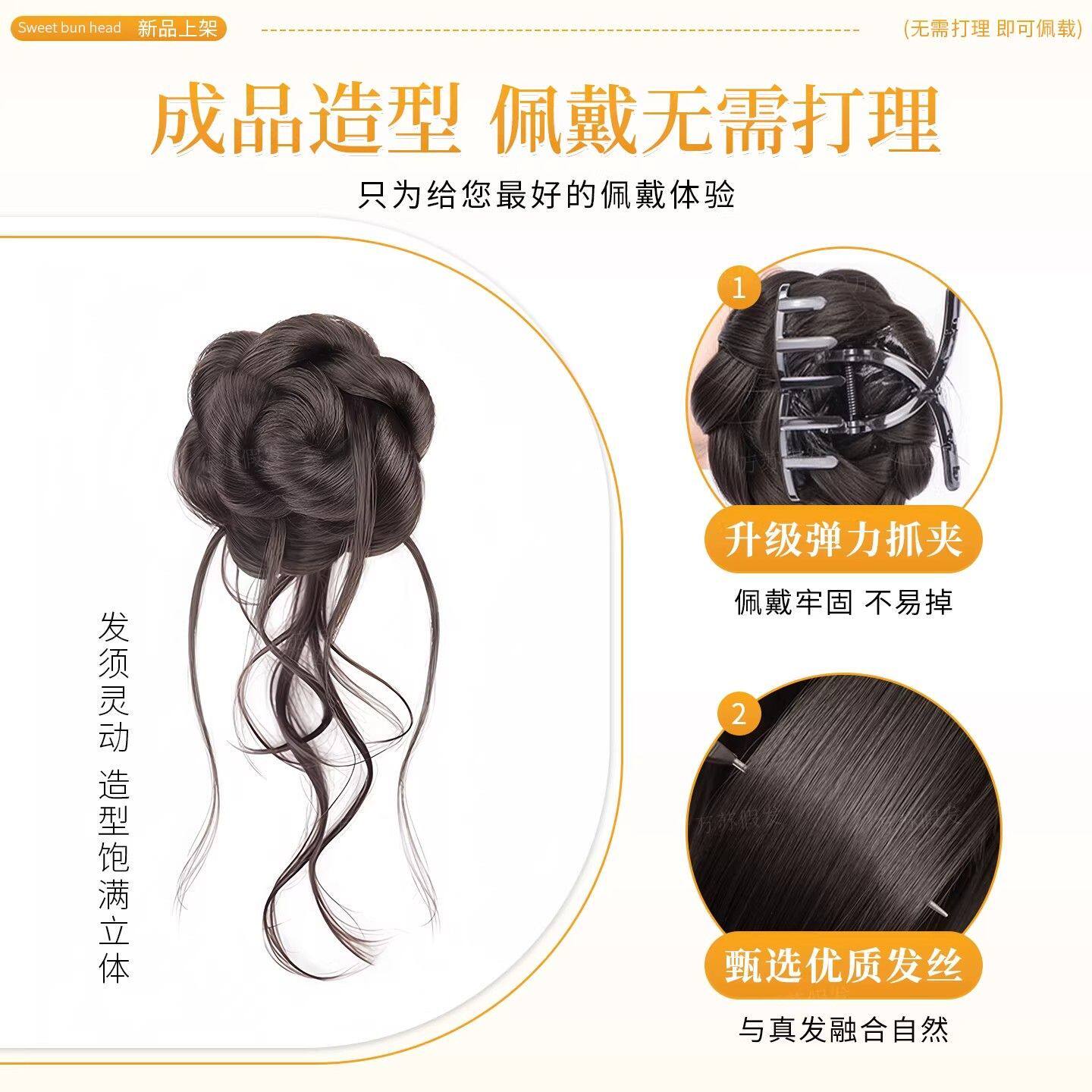 丸子头假发抓夹盘发神器蓬松千金贵气造型自然龙须双花苞头假发包