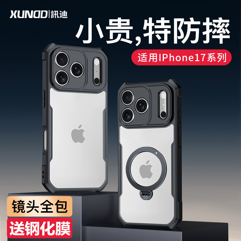 讯迪适用苹果17手机壳iPhone17ProMax新款17Pro气囊防摔磁吸保护套17Air硅胶镜头全包17pm带支点支架ip高级感